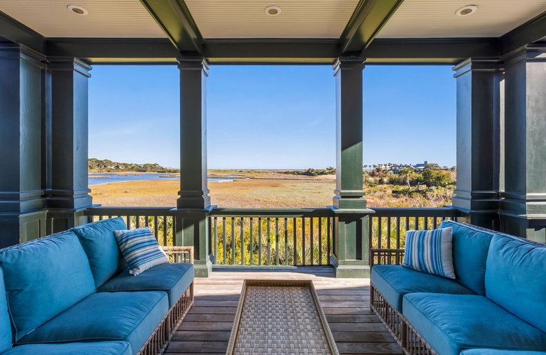 Nestled along Kiawah Island’s legendary Ocean Course Drive, this summer-only vacation rental showcases some of the most stunning views on the island! With marsh, golf, and ocean views throughout, this home features five bedrooms, a private pool, spacious screened porch, and three floors of outdoor living spaces. Beyond the scenic marsh lies the renowned Ocean Course golf course and expansive Kiawah Island beach. The property is an estimated 5-minute walk to the beach via Boardwalk 41.