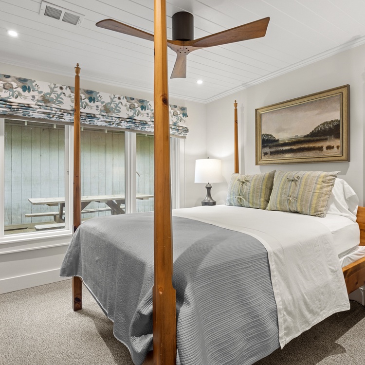 The sunroom offers a relaxing space to read or sip morning coffee. You will also find that it offers access to the deck.