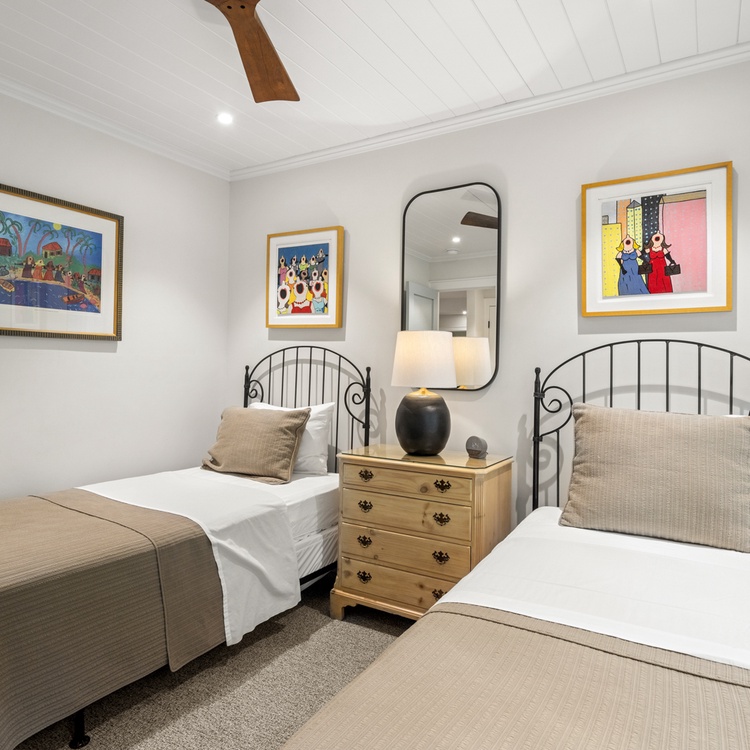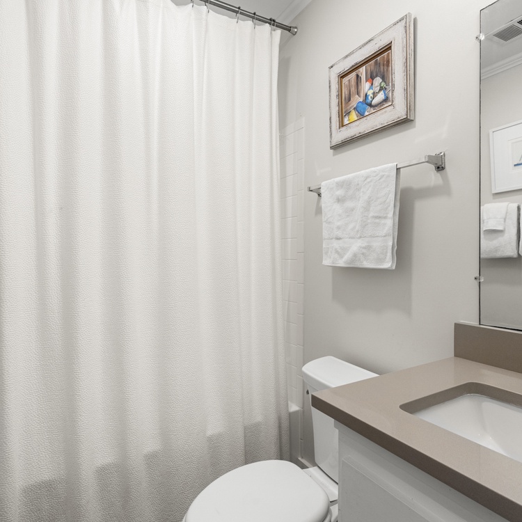 The secondary and third bedrooms are perfect for kids as they both offer 2 twin-sized beds, ample closet spaces, and scenic views. Both have access to a full bathroom just down the hall.