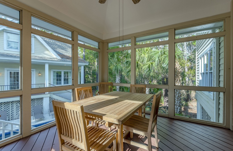 Enjoy nature from the large back deck or screened porch equipped with a ceiling fan. Have fun swimming in the gorgeous private pool and dry off in the sun laying on one of the many lounge chairs located around the pool.