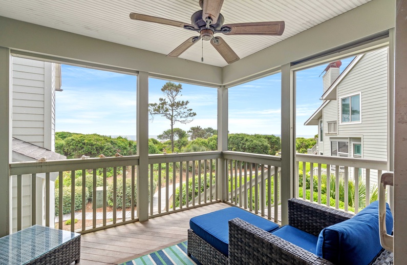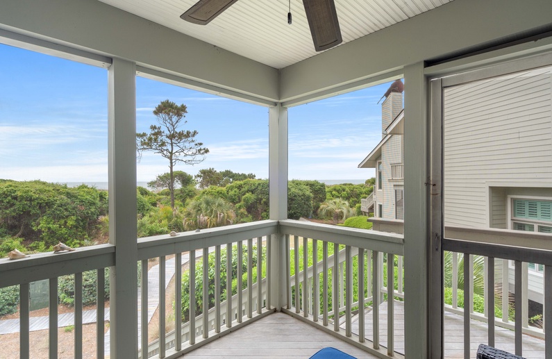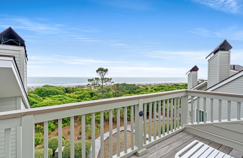 This Kiawah Island oceanfront vacation rental boasts amazing ocean views, provides direct access to the beach boardwalk, and is located just steps from the seasonal community pool.