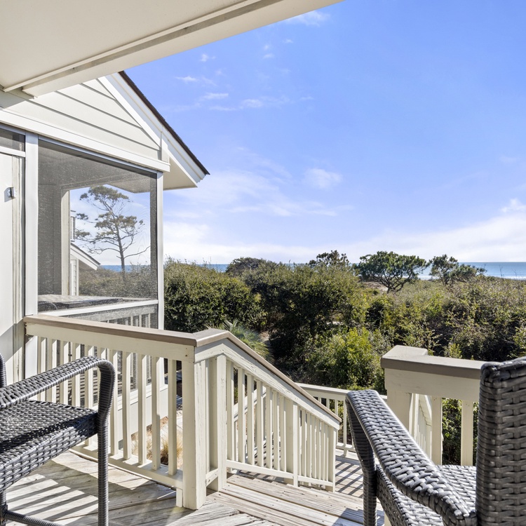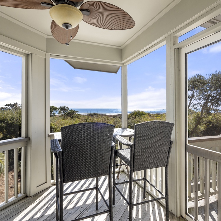 The screened porch, located on the second floor, offers a table and chairs. This area is perfect for enjoying ocean views, coastal breezes, and the soothing sounds of the waves. Please note that grilling is not permitted.