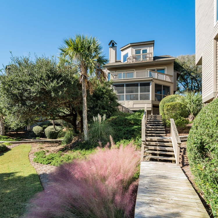 This Kiawah Island oceanfront vacation rental offers three floors of living space, ocean views, direct access to the beach boardwalk, and exclusive entry to its seasonal community pool.