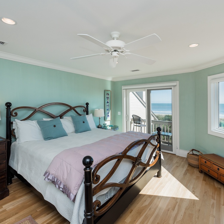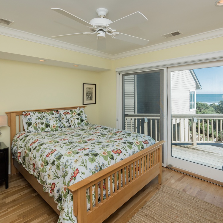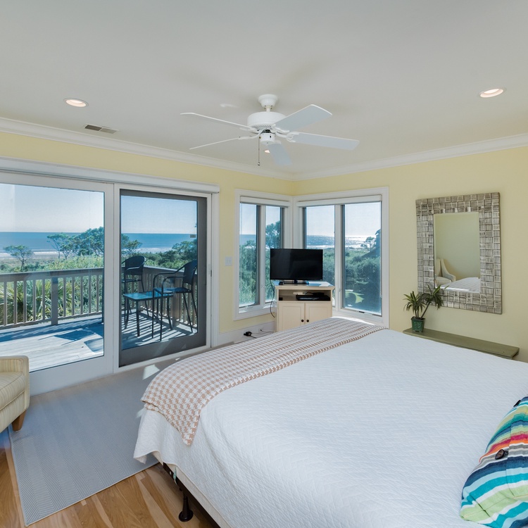 Ascend the stairs to the second level and find three bedrooms. The first bedroom offers a king-sized bed, access to an ocean view deck, flat-screen TV, and private bathroom with a walk-in shower. The second bedroom features a queen-sized bed, access to an ocean view deck, and private bathroom with a walk-in shower. The third bedroom features two twin beds and bathroom with shower/tub combo. The third-floor master suite boasts a king-sized bed, access to an ocean view deck, flat-screen TV, and private bathroom with a walk-in shower and soaking tub.