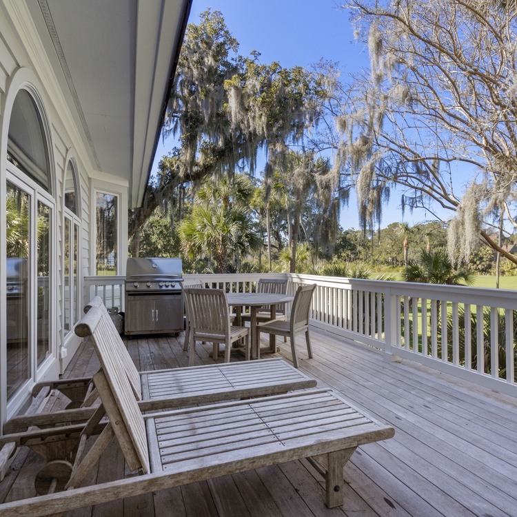 This Kiawah Island vacation rental offers a private pool and spa, golf course views, and is situated in the exclusive Vanderhorst Plantation. The home is just a 12-minute walk from the beach.