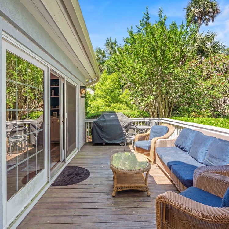 This Kiawah Island vacation rental, located in West Beach, features four bedrooms, views of Cougar Point Golf Course, and is only a 5-minute walk to the beach.