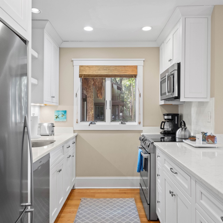 The villa is equipped with a new washer and dryer, high-speed internet, a monitor for remote workers, a Keurig coffee maker, Dutch oven, and 3 TVs.