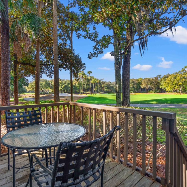 Overlooking Cougar Point Golf Course, the villa's deck is the perfect place to relax or enjoy a meal al fresco. The deck offers a bistro table with seating for two.