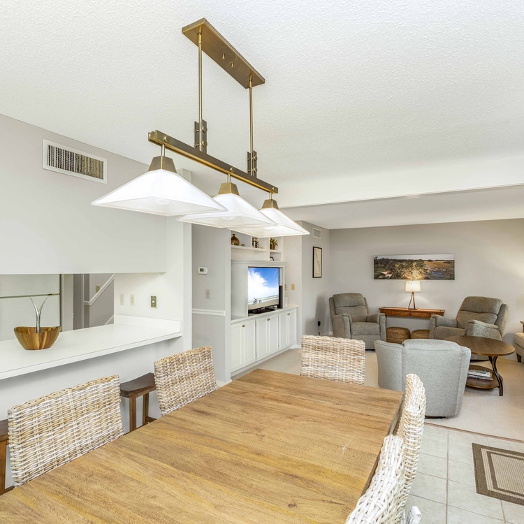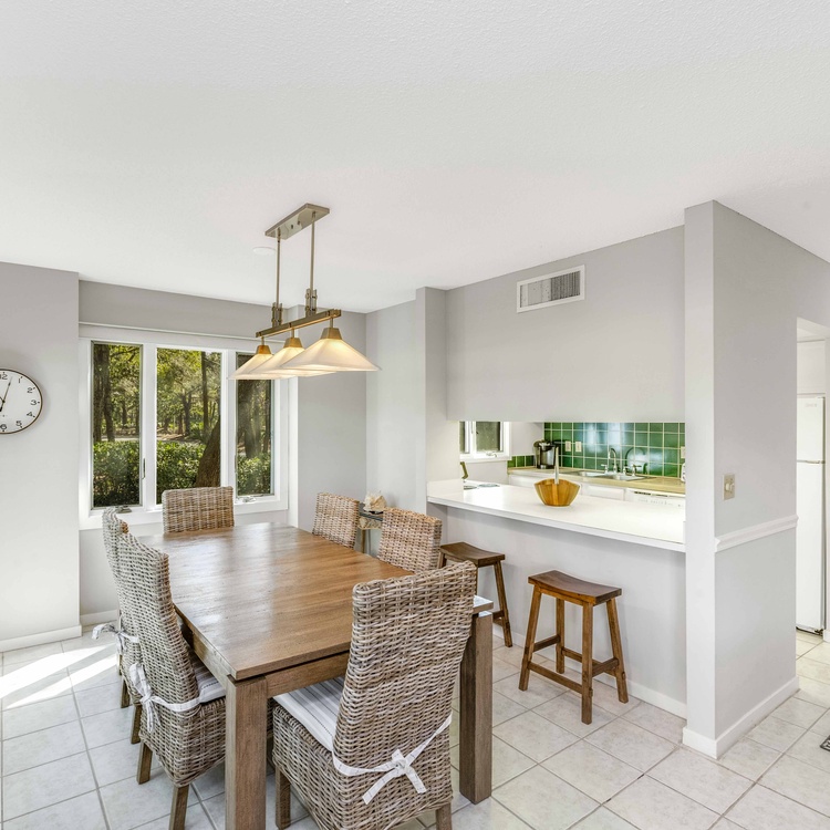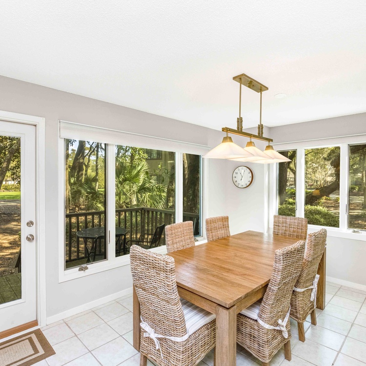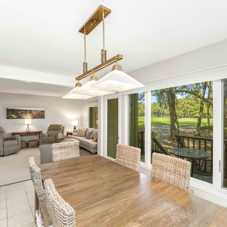 This Kiawah Island vacation rental features three bedrooms, beautiful views of Cougar Point Golf Course, and a convenient West Beach location. The villa is about a 6-minute walk to the beach and a stone's throw from Cougar Point Clubhouse and the West Beach Conference Center.