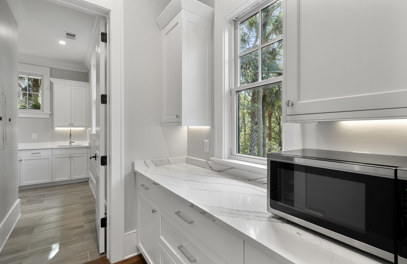 You will also find a first-floor, half-bathroom that is accessible down the hall.
