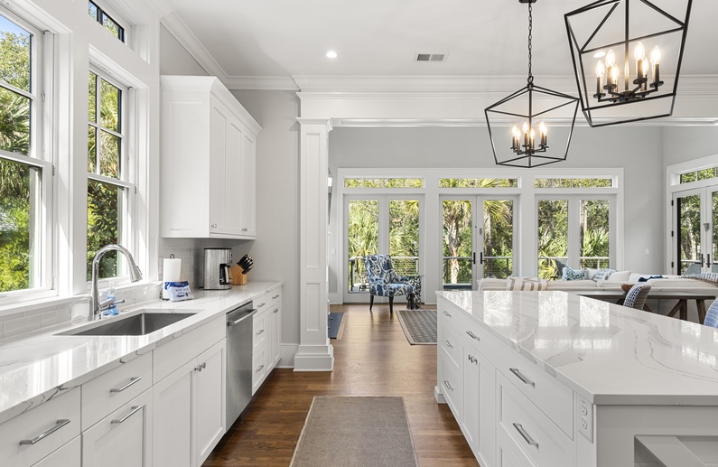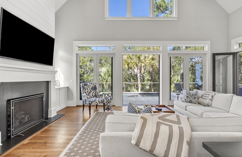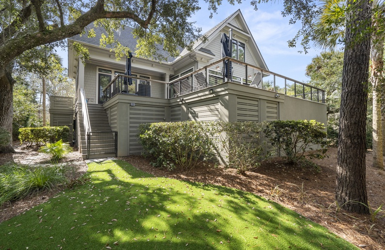 This Kiawah Island vacation rental features 4 bedrooms, a pool, and a spacious back deck. Conveniently located on Governors Drive, the main thoroughfare in Vanderhorst Plantation, the home is a 7-minute bike ride to the beach.