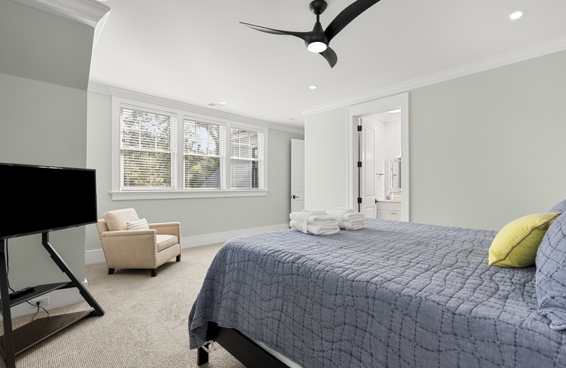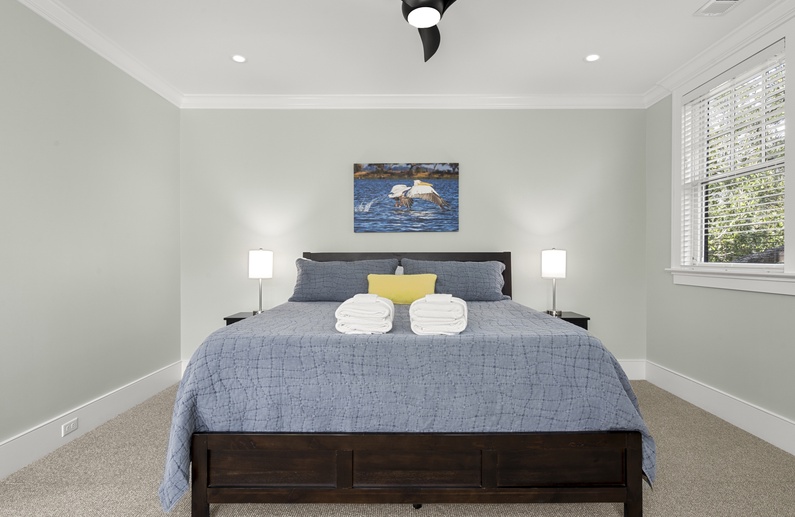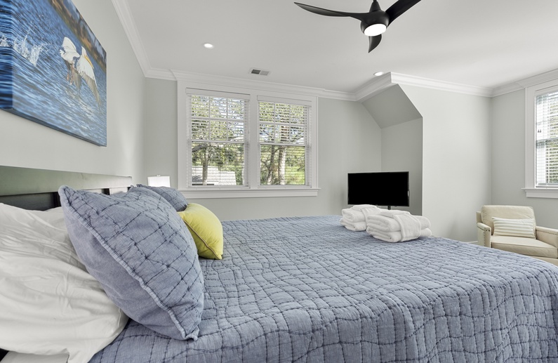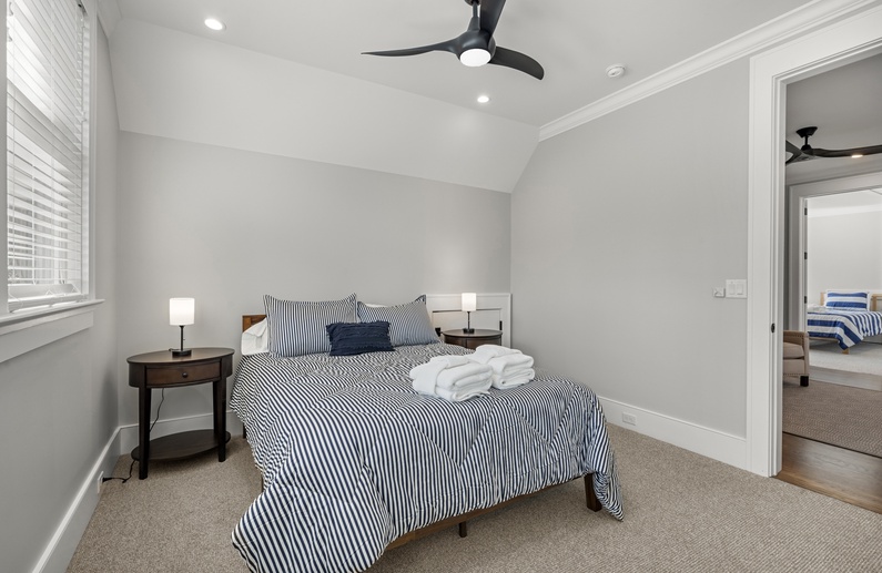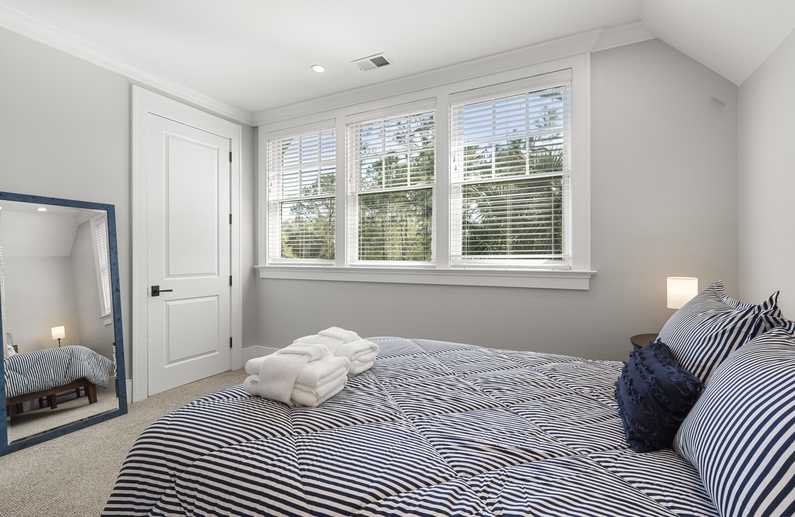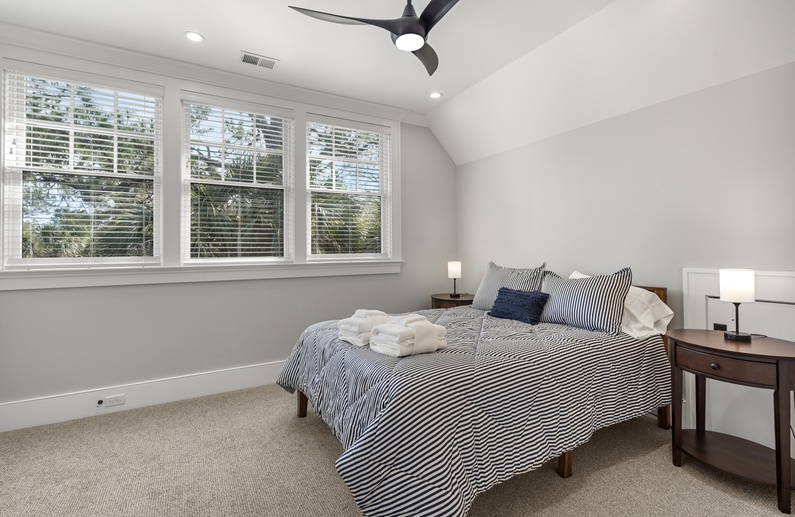 The third bedroom is found on the second floor and offers a queen-sized bed and scenic views.