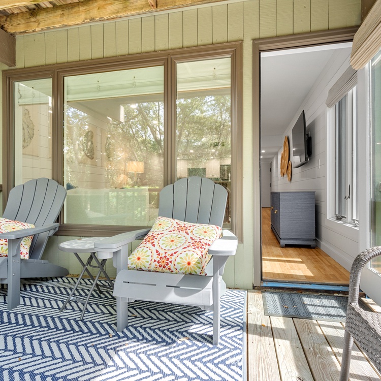 This renovated Kiawah Island vacation rental features 2 bedrooms, 2 bathrooms, and a private deck. The villa is just about a 4-minute walk to the beach.