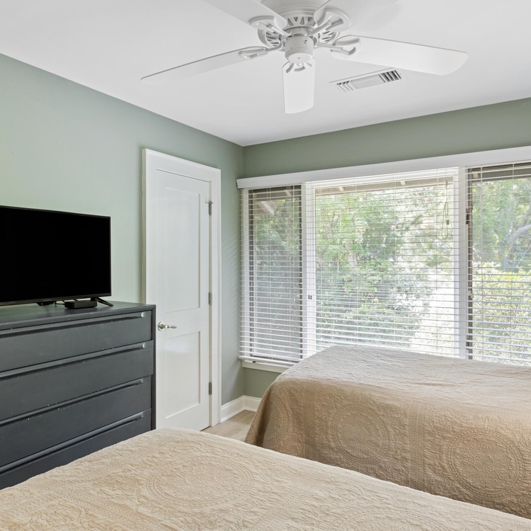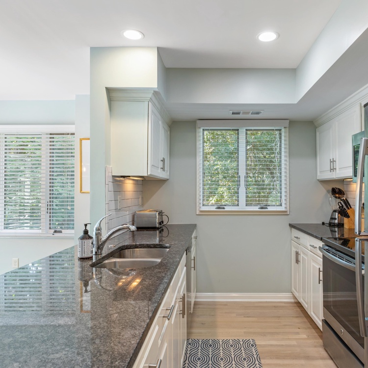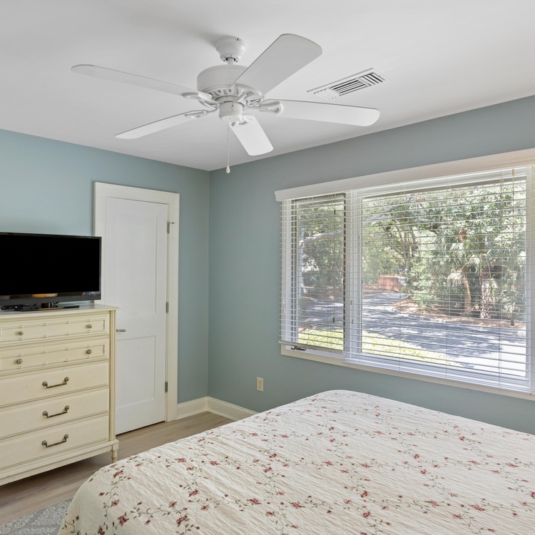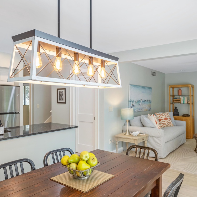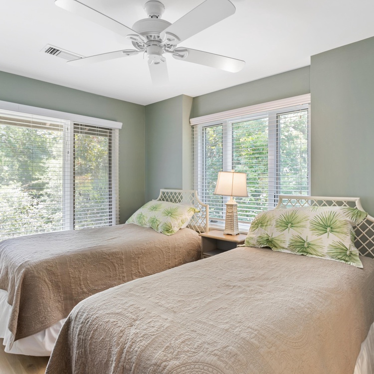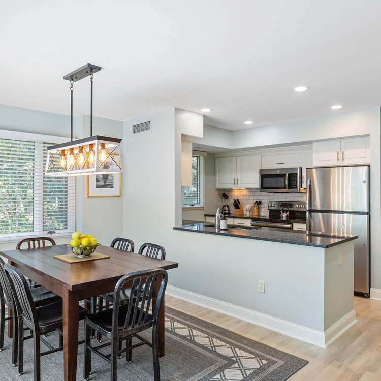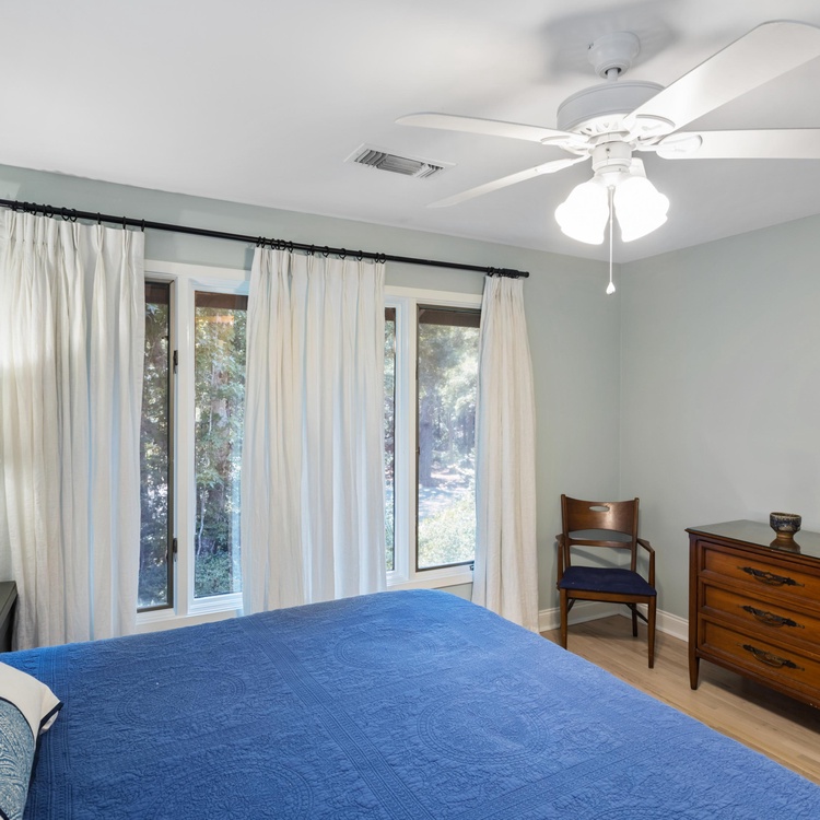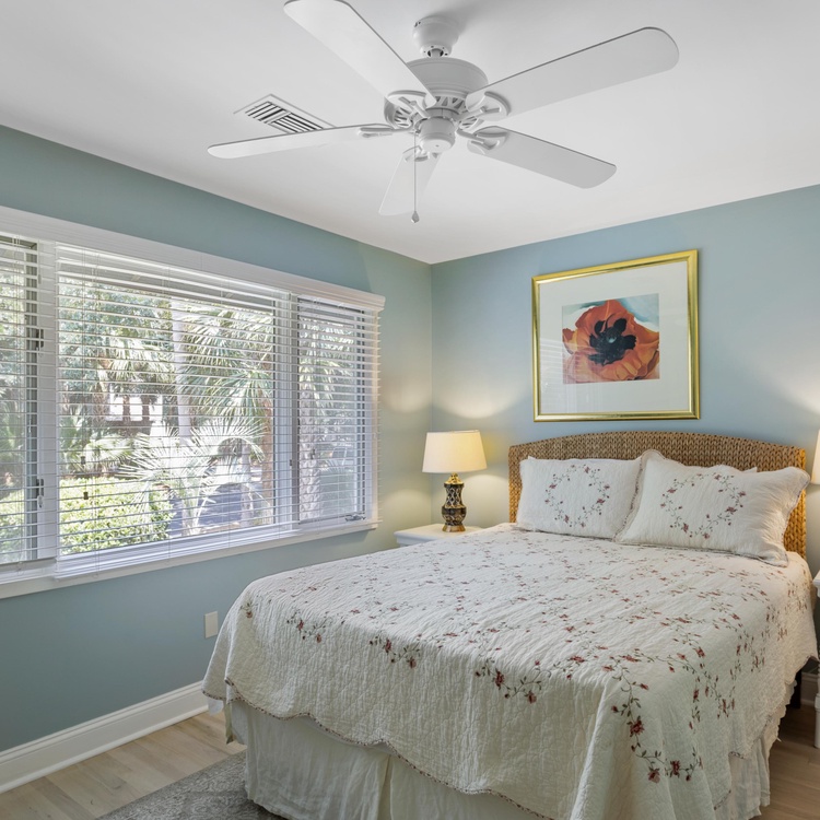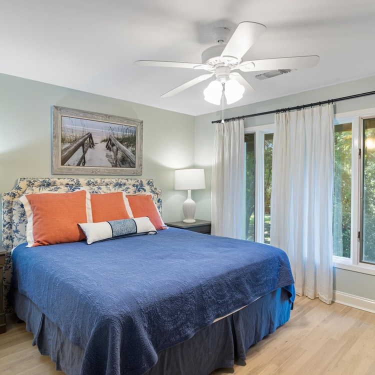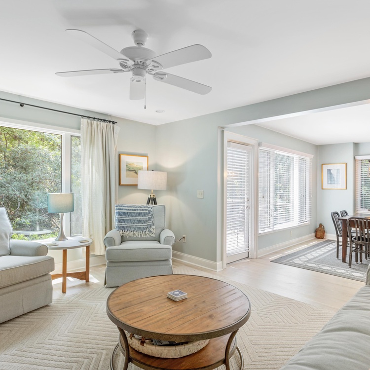 This updated Kiawah Island vacation rental offers 3 bedrooms, 3.5 bathrooms, and a private deck. The villa is about a 3-minute walk from the beach.