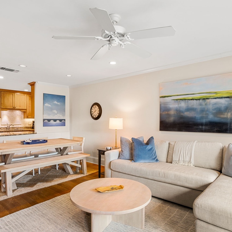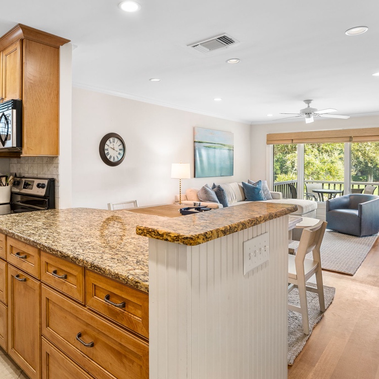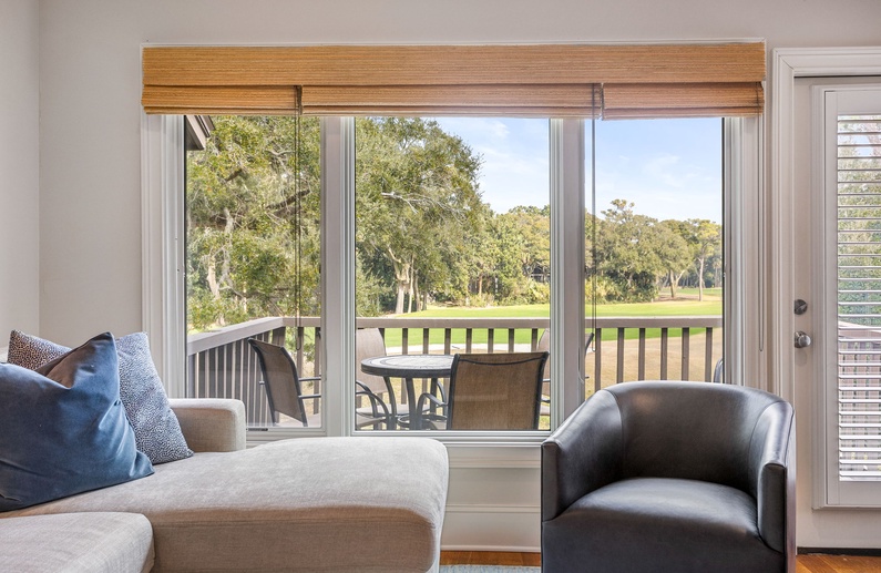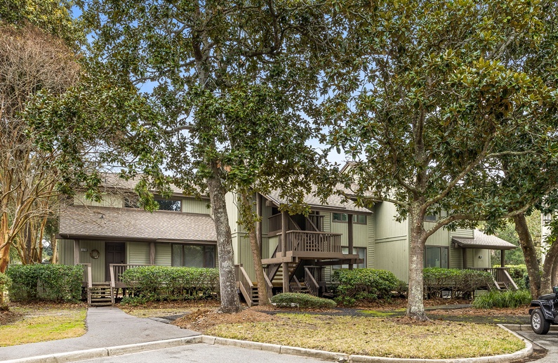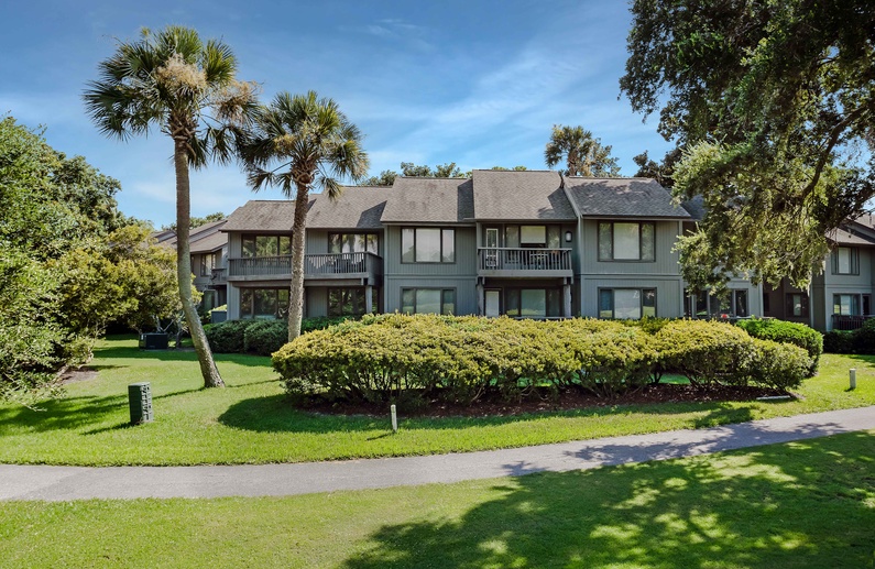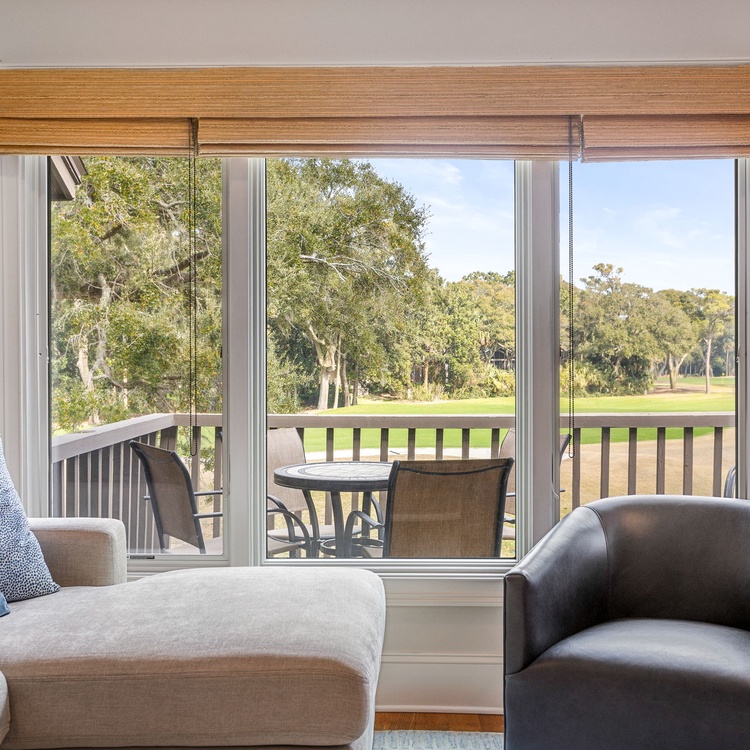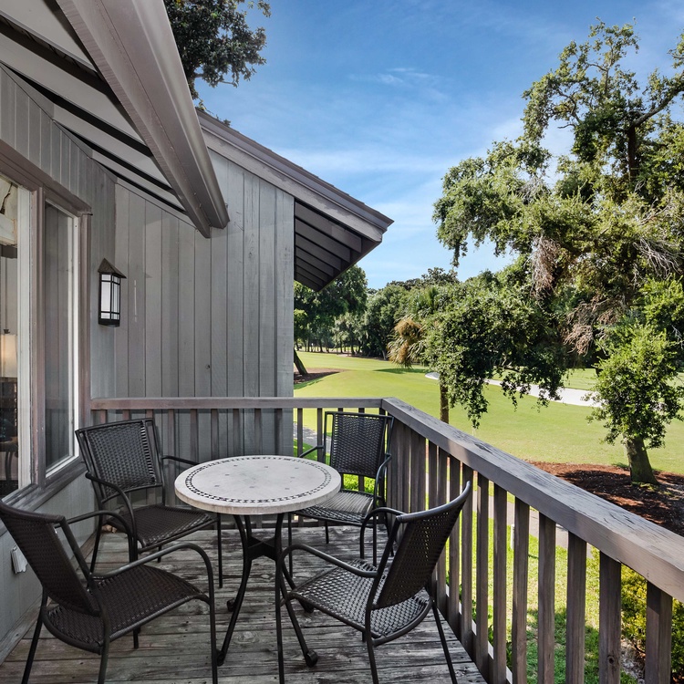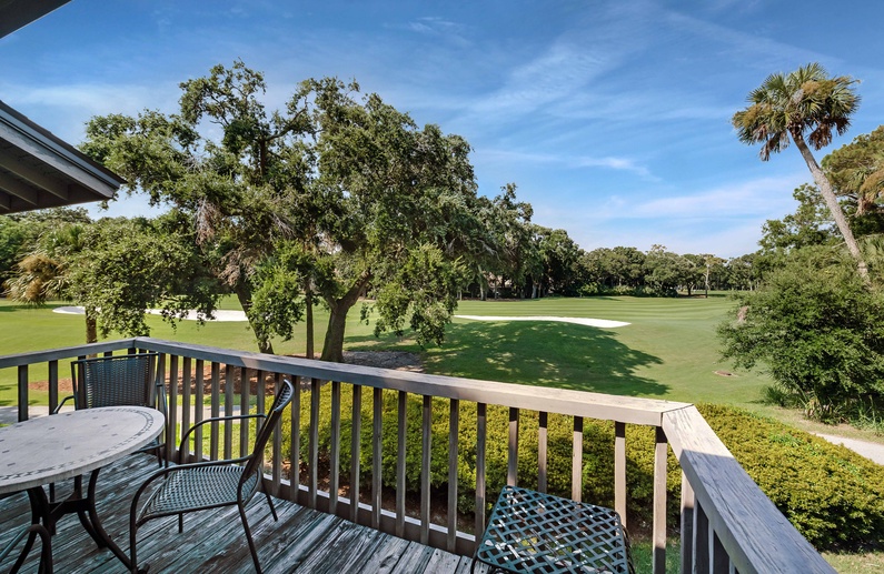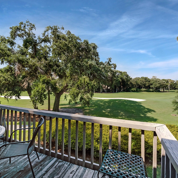 This Kiawah Island vacation rental is a second-story, two-bedroom villa. Guests will enjoy the deck overlooking the golf course and the short 5-minute walk to the beach.