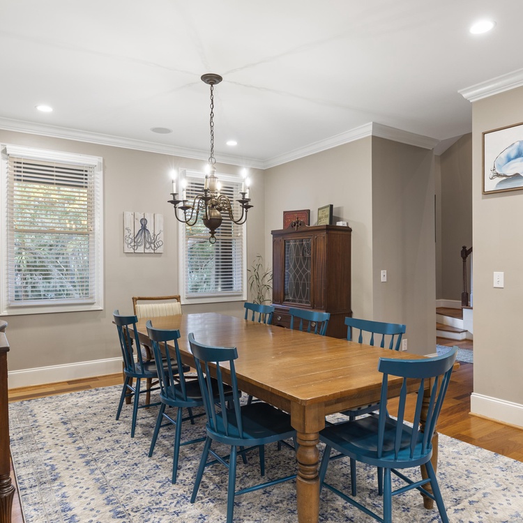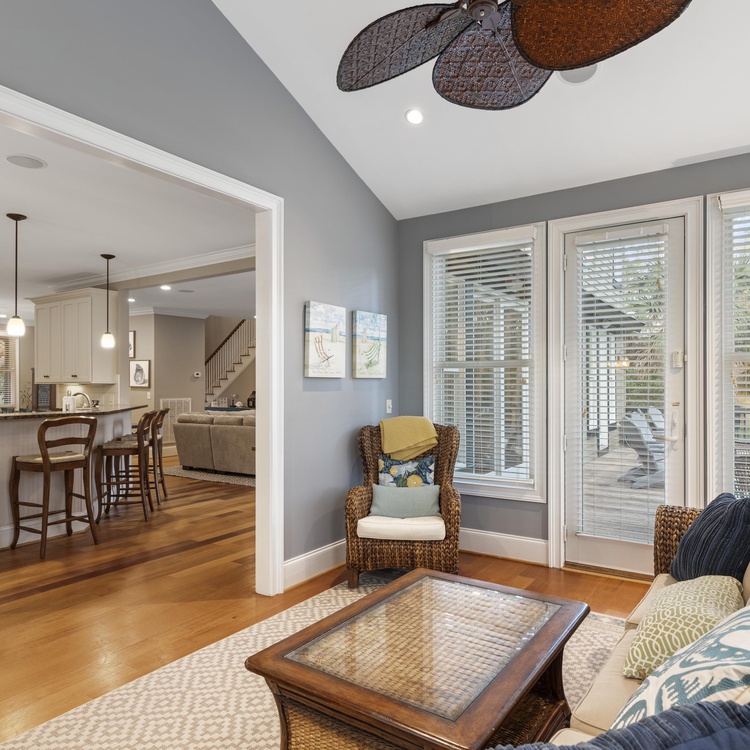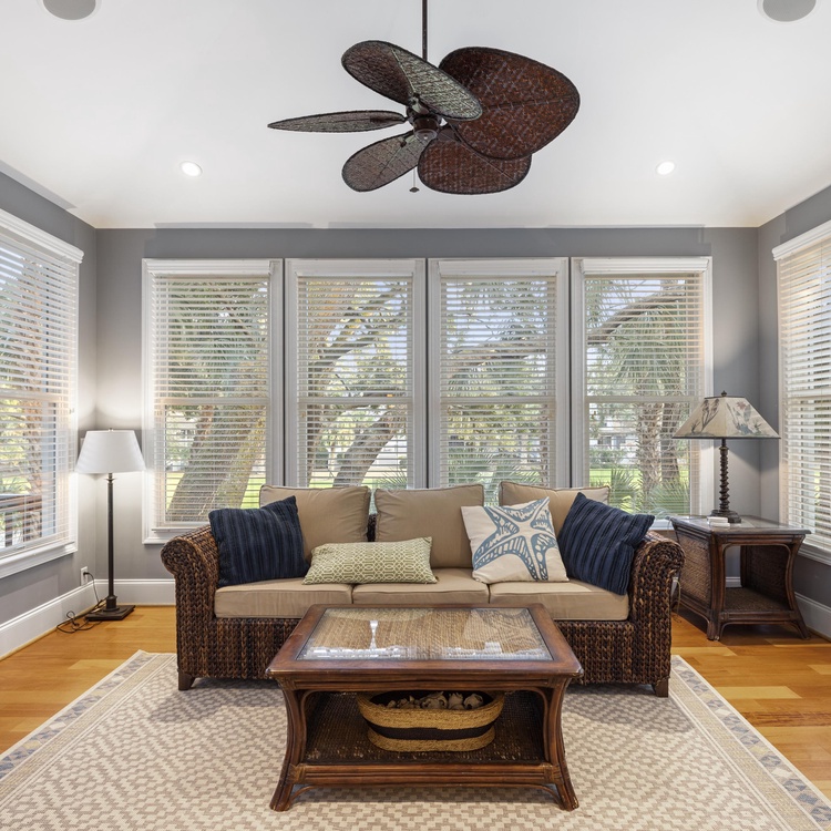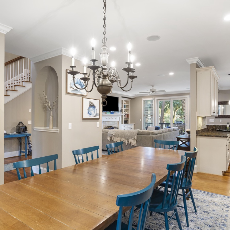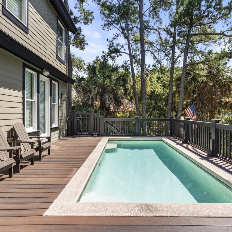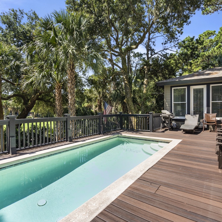 This Kiawah Island vacation rental features a private pool, relaxing views of the 9th hole on the Turtle Point Golf Course, and a spacious backyard. Located just past the second gate in the Vanderhorst section of Kiawah, the home is only a short 5-minute bike ride or a 15-minute walk to the beach. The Turtle Point Club House, which features the Turtle Point Bar and Grille and Tomasso (fine Italian food), is a 5-minute walk from the home.