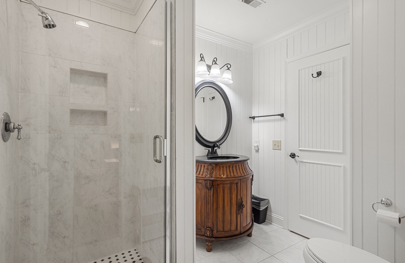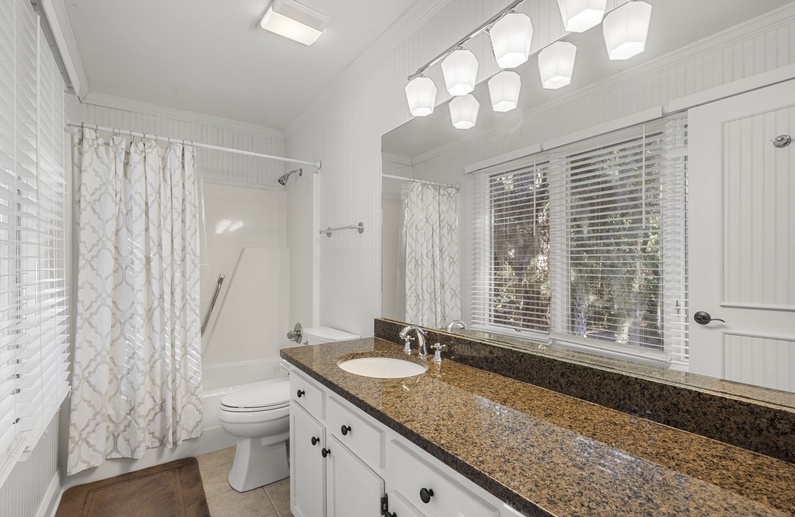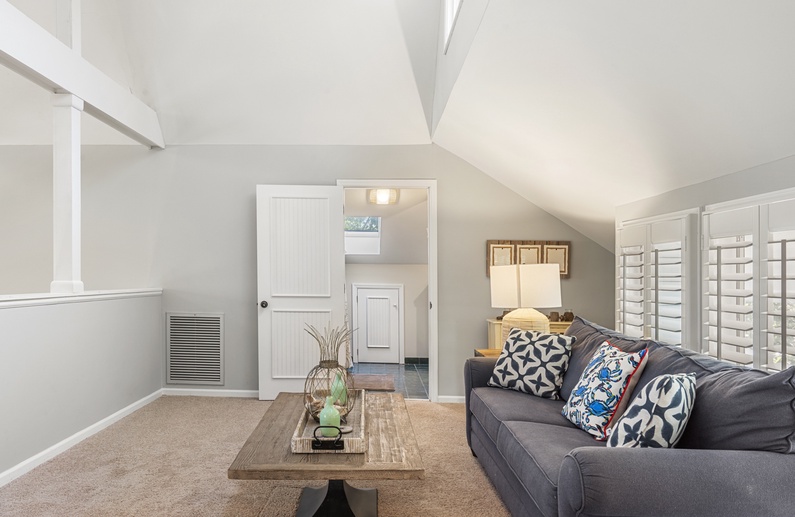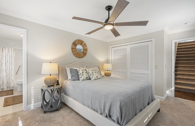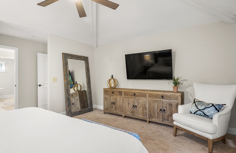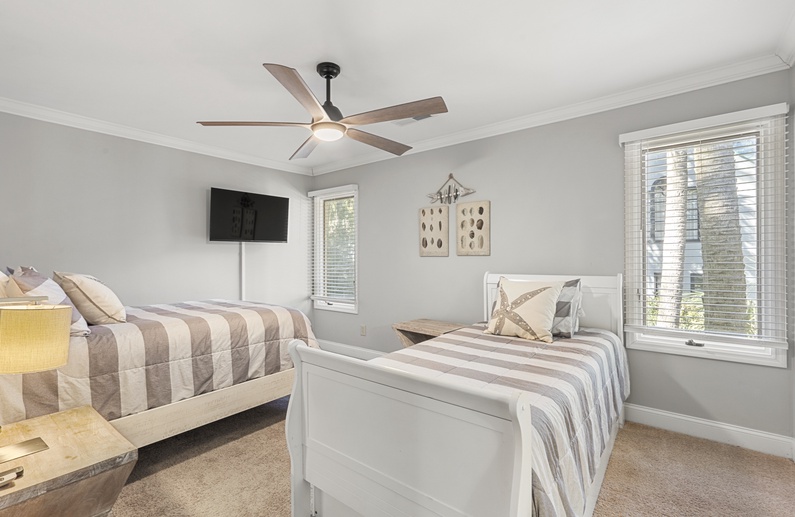 Enjoy relaxing in one of the home’s three comfortable bedrooms. The golfview primary suite boasts a king-sized bed, a TV, access to the back deck, and a private bathroom with a walk-in shower and tub. On the other end of the home, you will find the two remaining bedrooms. One bedroom has a queen-sized bed, TV, and a private bathroom with a shower/tub combo. The next bedroom has a full-sized bed and twin trundle. Additional sleeping space is available on the sleeper sofa in the loft.
