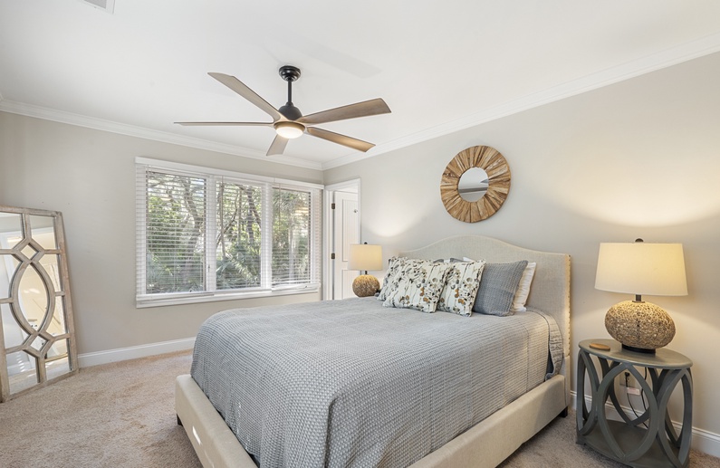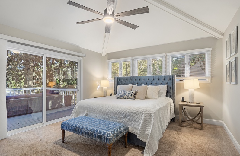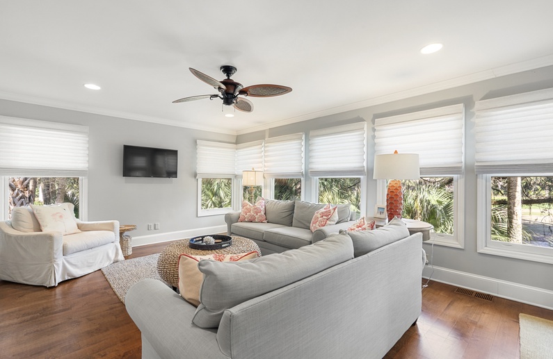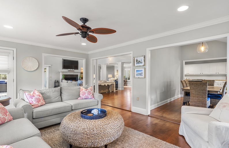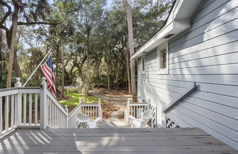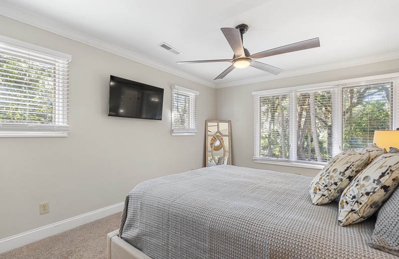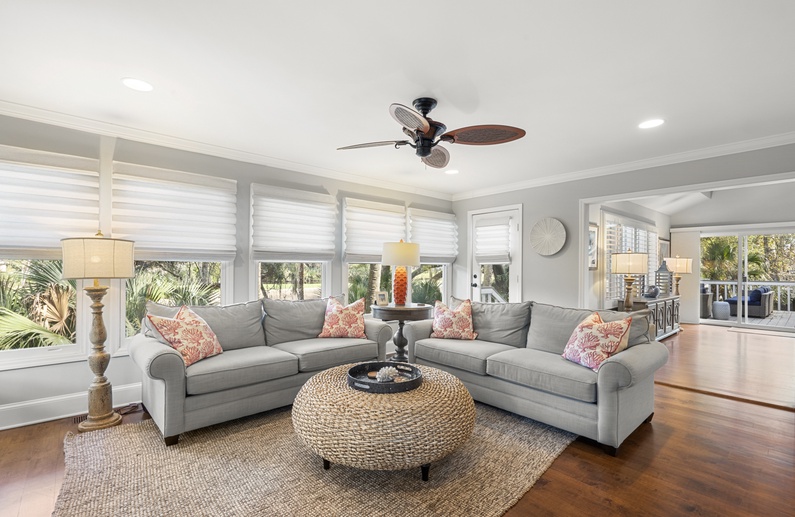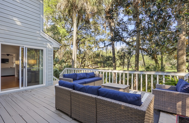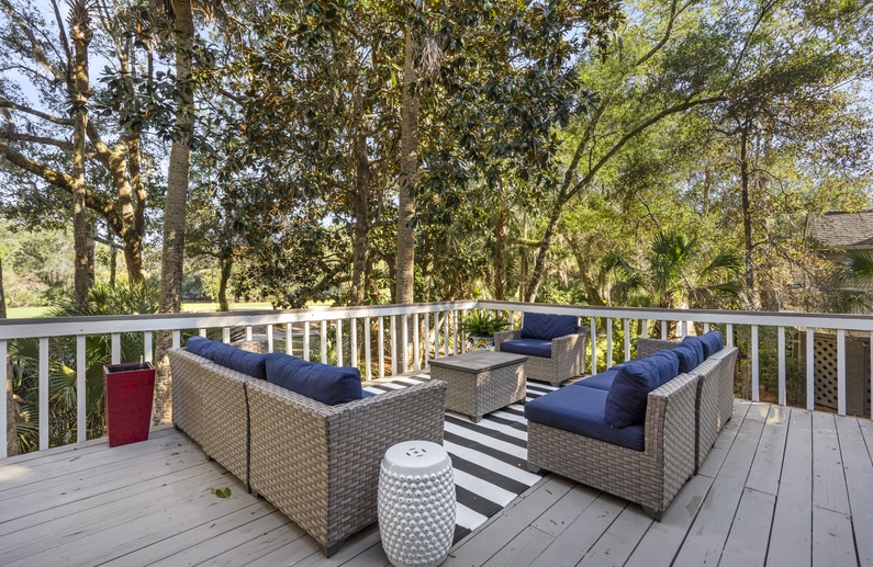 Step out to the home’s deck and experience breathtaking views of Turtle Point Golf Course. The deck has plenty of outdoor seating to watch the golfers and enjoy the serene coastal breezes.