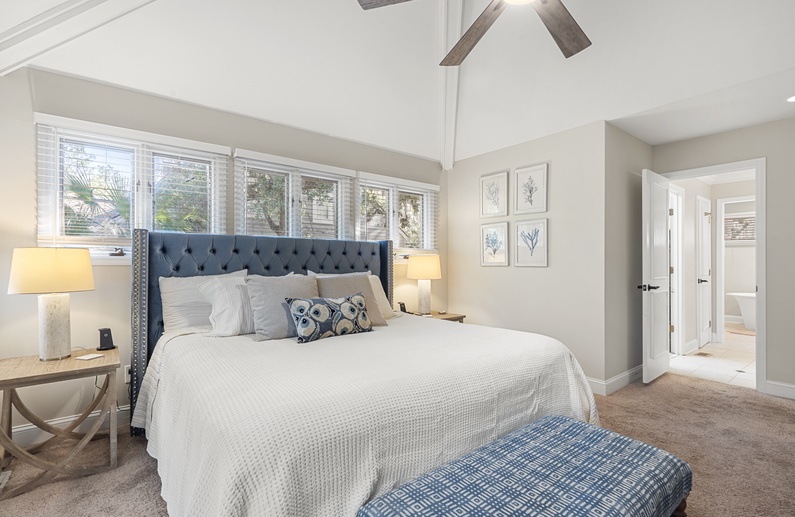 This Kiawah Island vacation rental offers three bedrooms, gorgeous golf views, and plenty of gathering space. The home is about a 13-minute walk or 4-minute bike ride to the beach.