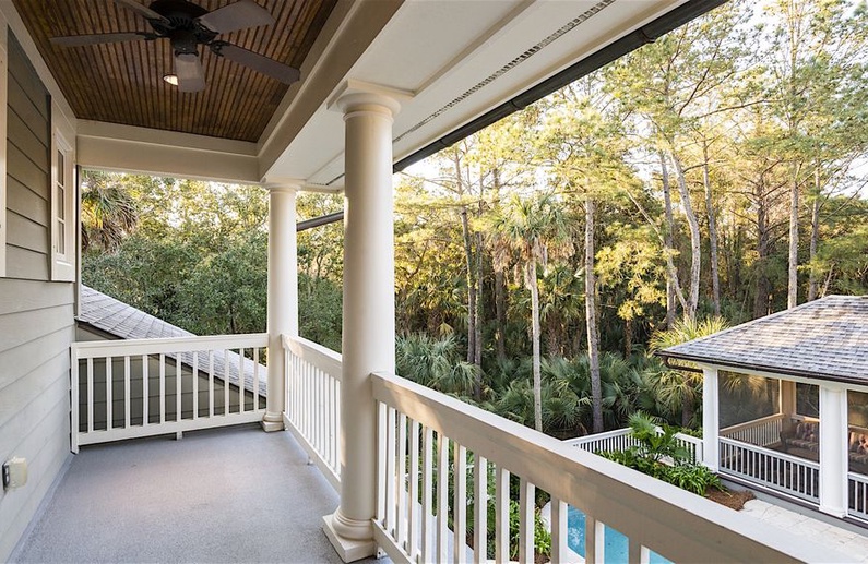 The home’s 28' x 14' saltwater pool is situated between the main house and the guest house. The large pool is surrounded by lovely landscaping, lounge seating, and a gas grill. Guests will also enjoy relaxing on the screened porch and the second-story guest house porch.