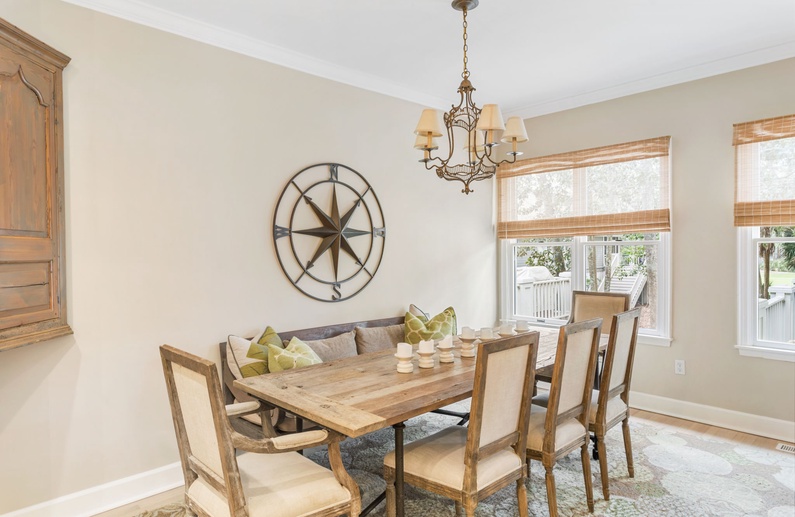 This Kiawah Island vacation rental features 3 bedrooms and 3.5 bathrooms, seasonal community pool access, and a quick 7-minute walk to the beach. In 2022, the home received a variety of updates, including new interior paint, new furniture for the side deck, and new decking for the front porch, stairs, and side deck.