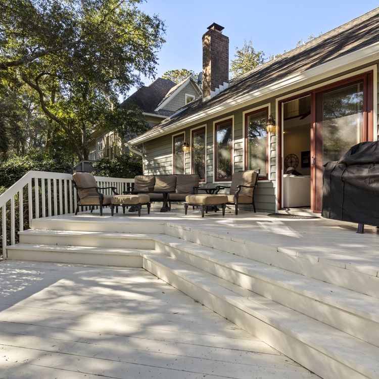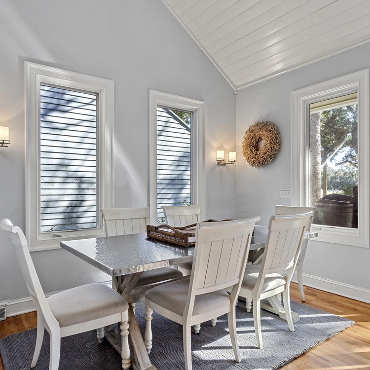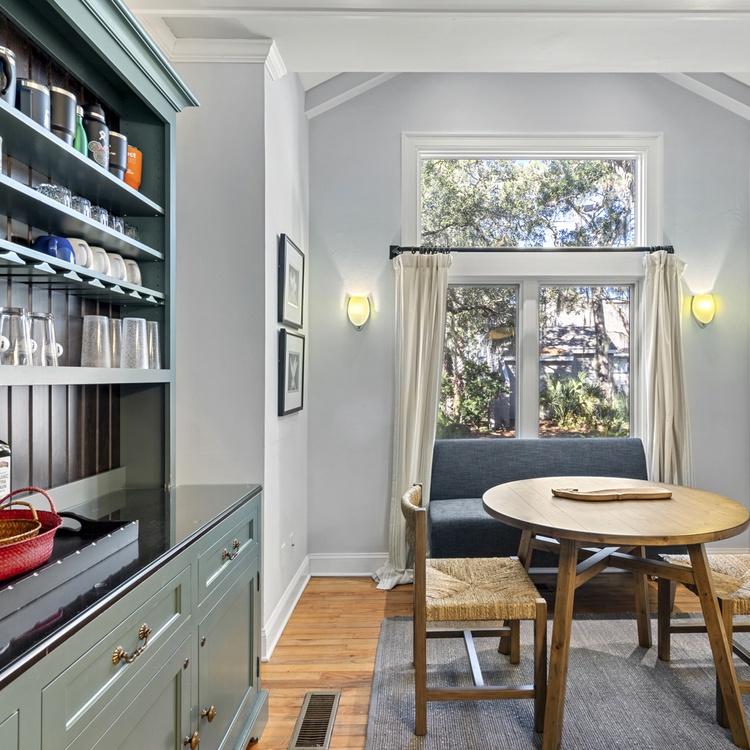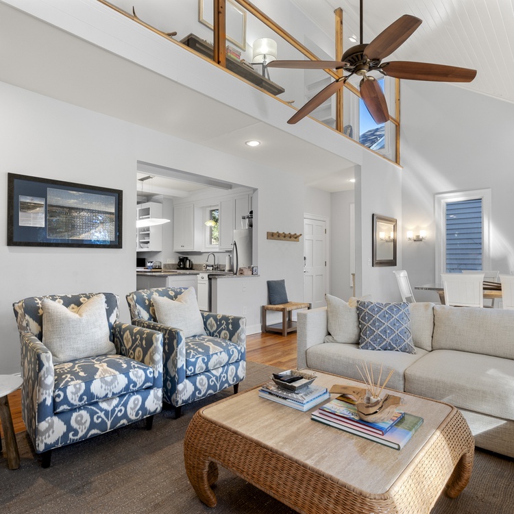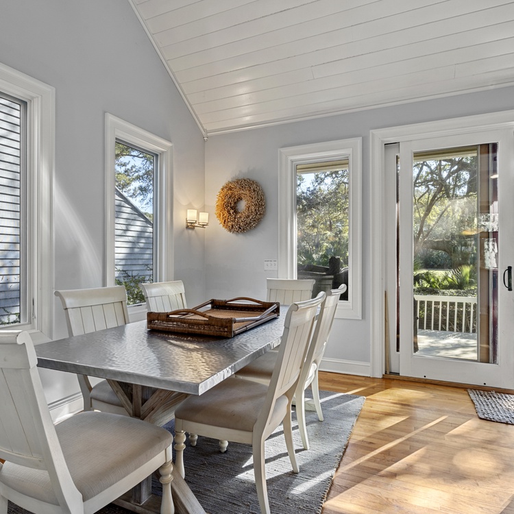 This Kiawah Island vacation rental features an open floor plan, comfortable furnishings, and three bedrooms and is only a 4-minute bike ride to the beach.