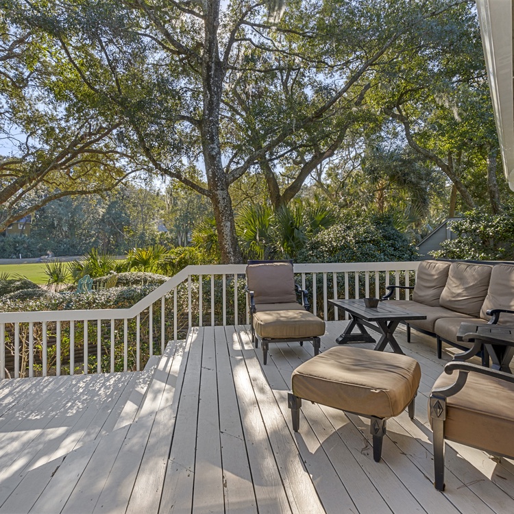 The large back deck features outdoor furniture and a gas grill and has great views of Cougar Point Golf Course's 7th fairway and green. The home is tucked away on a private street that offers a total sense of privacy. Enjoy gorgeous marsh views from above at the Marsh View Tower located at the end of Marsh Hawk Lane.