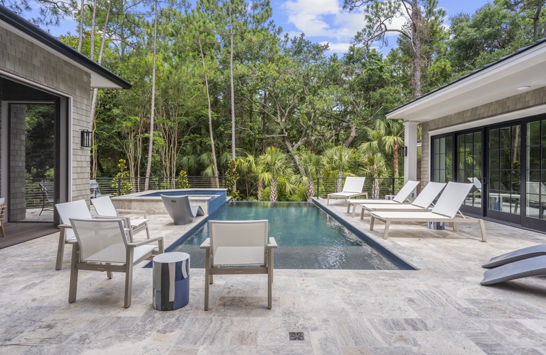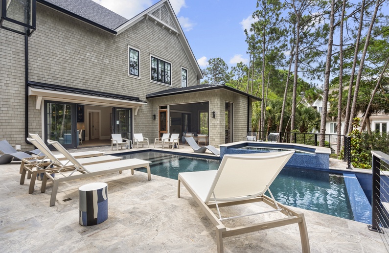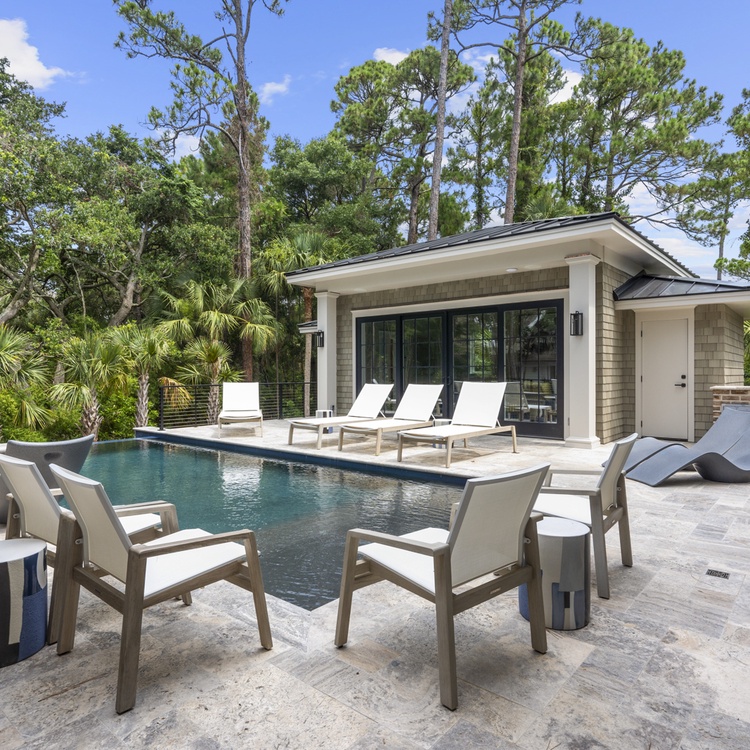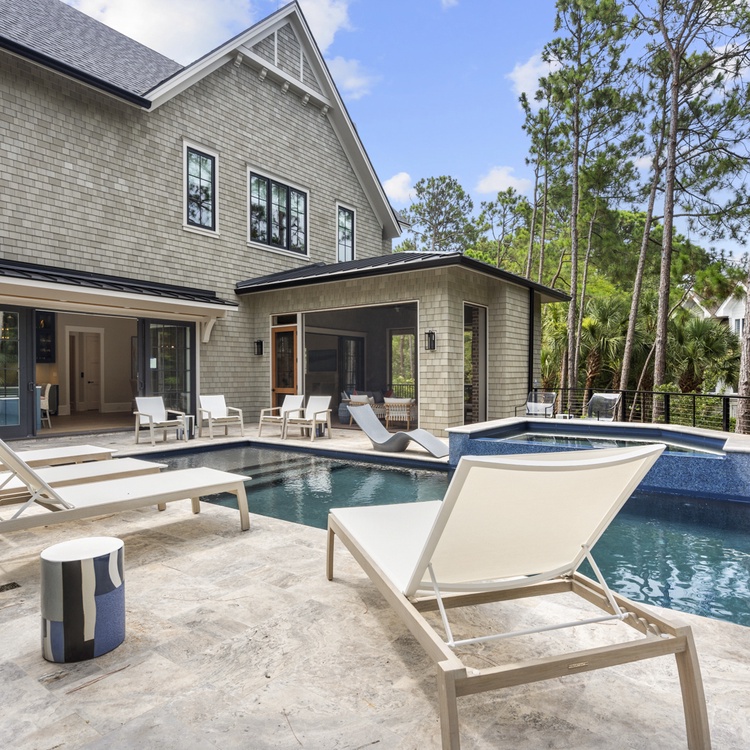 This newly built Kiawah Island vacation rental is settled in Vanderhorst Plantation. It features 6 bedrooms, a private pool (size 12x28) and spa, a spacious pool house, and a stunning screened porch. This home offers a short-6 minute walk to the nearest beach!