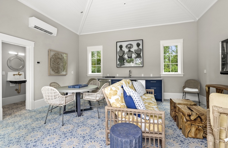 The beautiful back deck also invites you to sit back and unwind. Go for a swim, soak in the spa, or lounge poolside- the possibilities are endless! Enjoy the air-conditioned pool house as it offers an opportunity to cool off, lounge by the TV, or take a quick bathroom break.