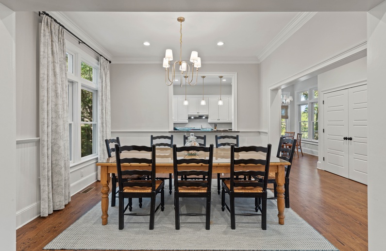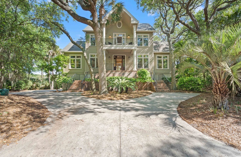 This beautiful Kiawah Island vacation rental offers 6 bedrooms, golf and lagoon views, and a private pool. The home is just across the street from the beach access path and is about a 3-minute walk from the beach.