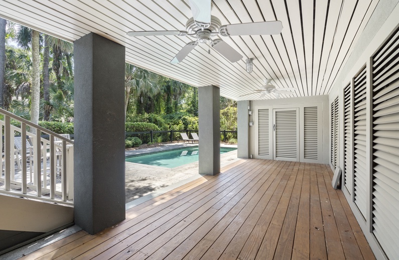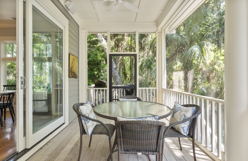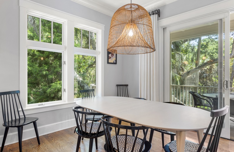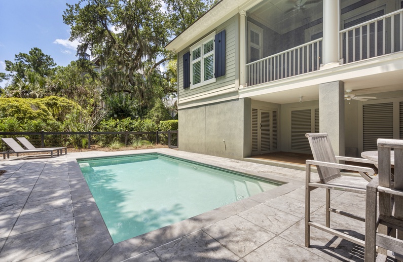 This Kiawah Island vacation rental features 4 bedrooms, a private pool, and a spacious screened porch. Conveniently located in Vanderhorst Plantation, the home is a 9-minute bike ride to the nearest beach access.