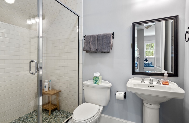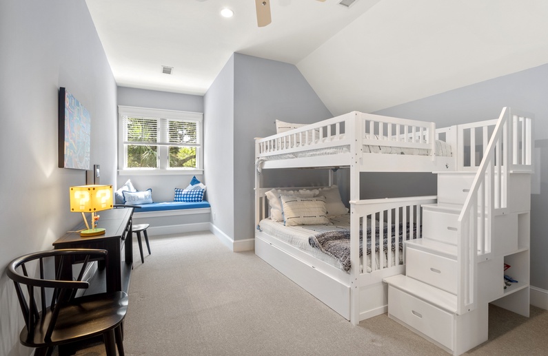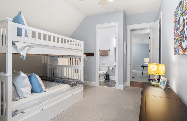 The second floor features 2 more bedrooms, both perfect for kids as each offer private bathrooms. You will also find a cozy office area equipped with a full pull-out sleeper sofa.