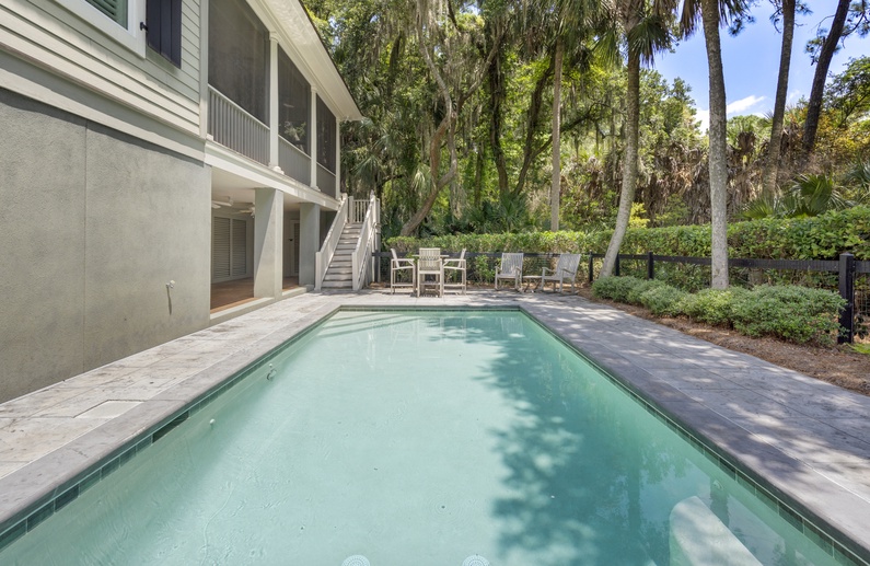 The beautiful screened porch and spacious pool area invite you to sit back and unwind. Go for a swim, lounge poolside, or dine al fresco- the possibilities are endless!