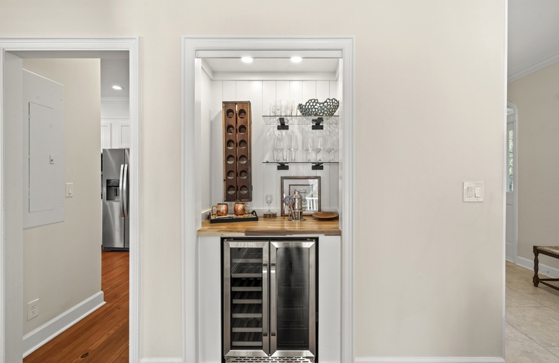Guests have access to one side of the two-car garage. The garage has a ping pong table, game table and chairs, and a dart board. There is also a full-size refrigerator for additional food and beverage storage.