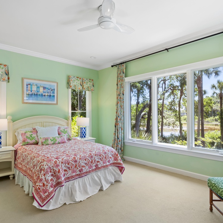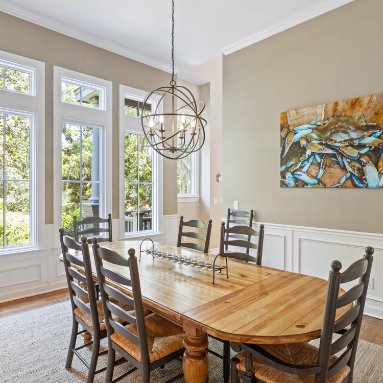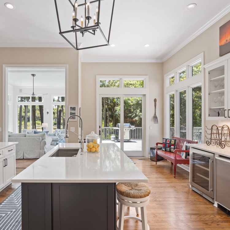 This renovated Kiawah Island vacation rental offers six bedrooms, a private pool, and lovely lagoon views. Situated on a quiet cul-de-sac in Kiawah's Vanderhorst section, this beautiful and spacious home is adjacent to the bike path for easy access to the beach. The home is about an 8-minute bike ride from the beach.