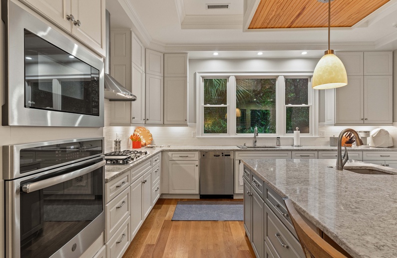 This Kiawah Island West Beach vacation rental features 4 bedrooms plus a private pool, and is just about a 5-minute bike ride to the beach. The home also offers an EV charger in the garage for guest use.