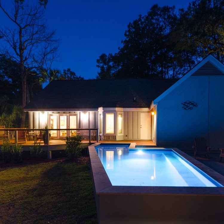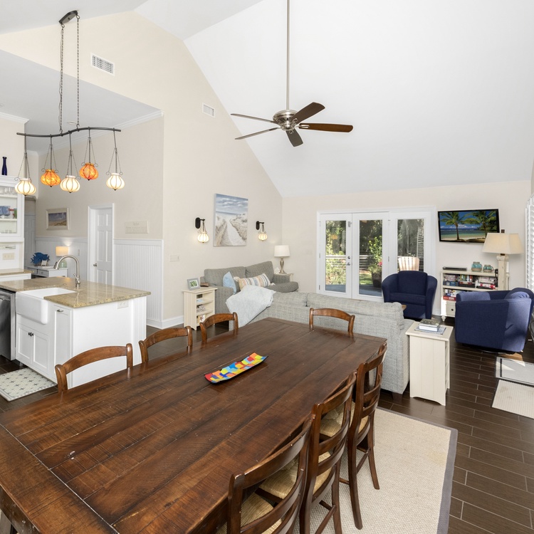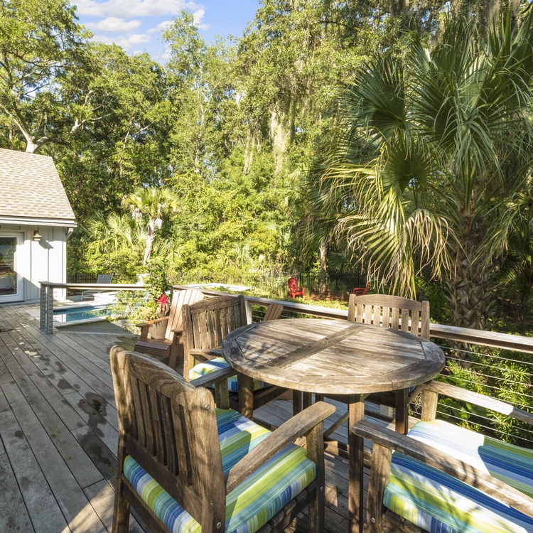 This beautiful and secluded 5-bedroom Kiawah Island vacation rental in West Beach boasts a heated pool and is only a short walk or bike ride to the beach. The property features a 4-bedroom main house and a 1-bedroom guest suite above the garage (the garage is not available for guest use).