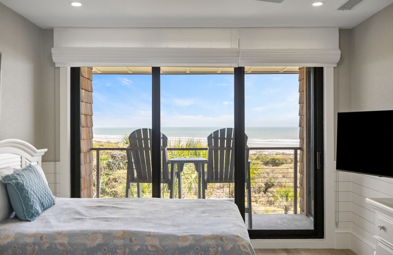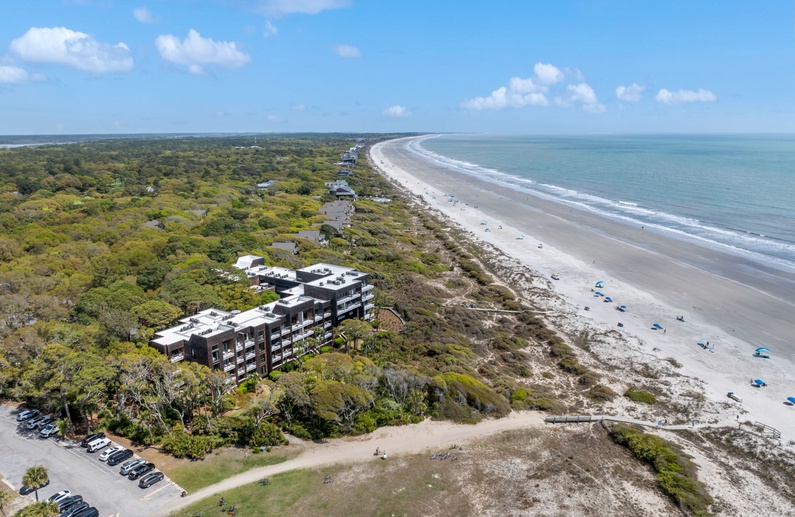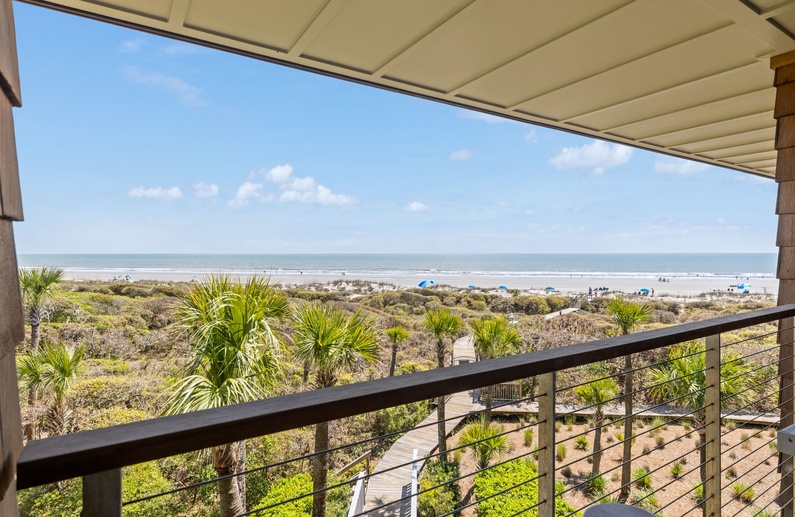 This elegant Kiawah Island oceanfront vacation rental is located on the third floor, boasts two bedrooms and captivating views over the ocean.