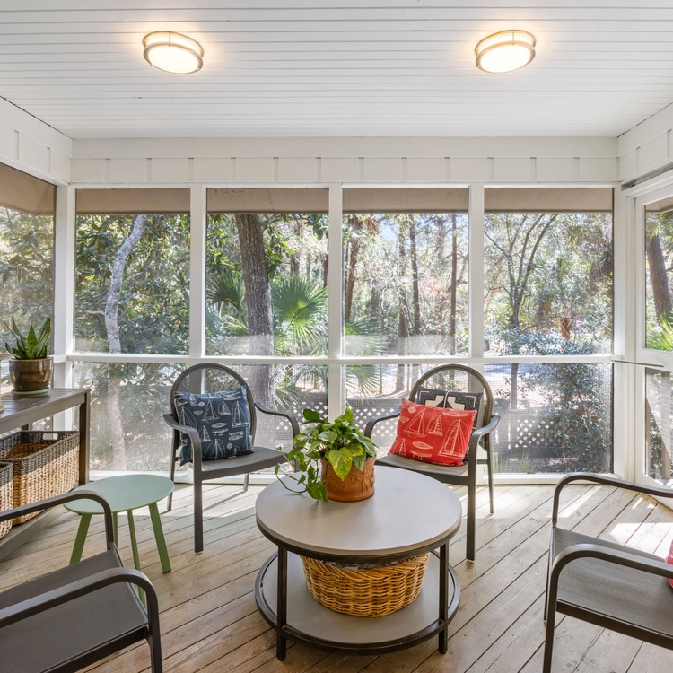 Enjoy the great outdoors and take in the sea breezes: this cottage has a screened porch and front and back decks nestled among nature and perfect for unwinding after a day at the beach or pool.