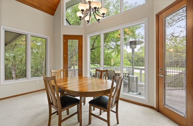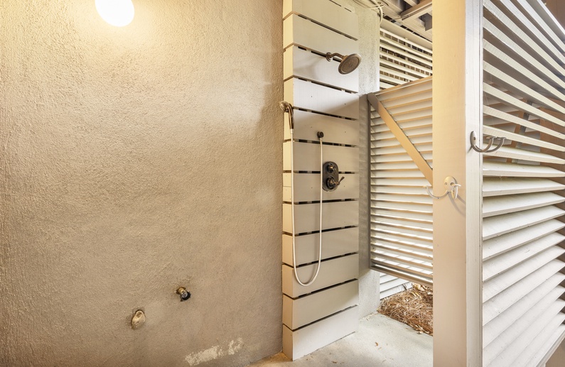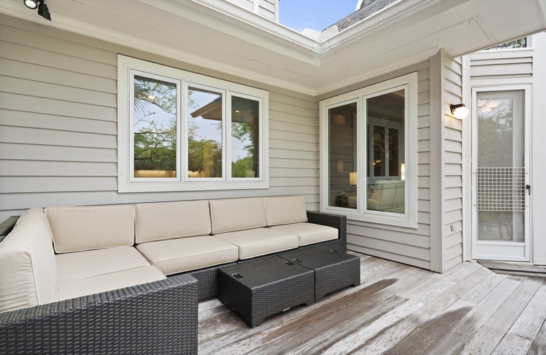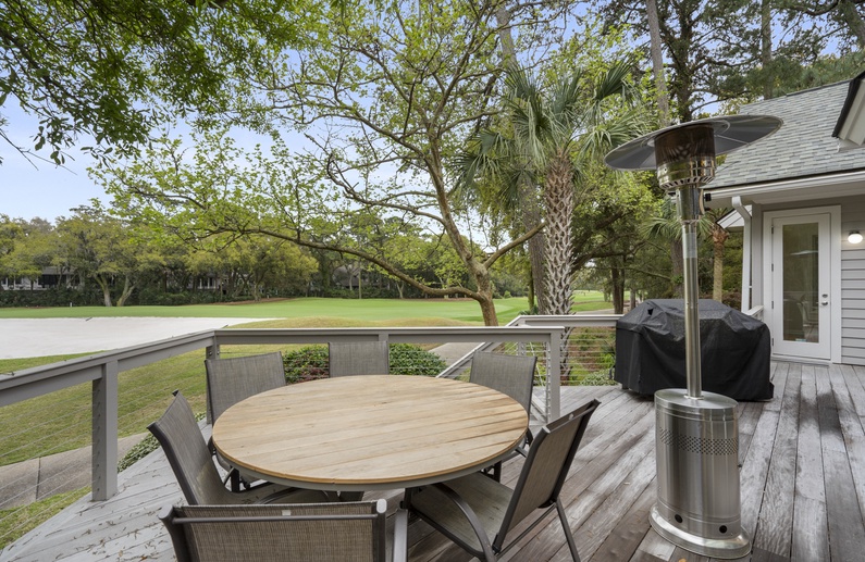 The relaxing golf views can be enjoyed from sunrise to sunset in the sunroom and on the deck area. Both the sunroom and the deck offer plenty of seating. An outdoor shower is available for guest use.