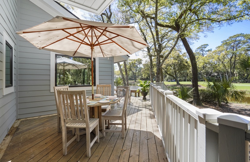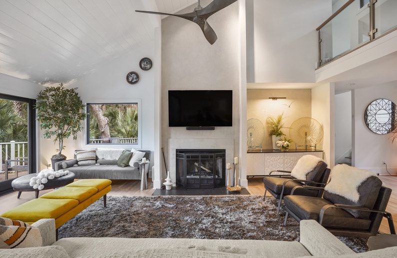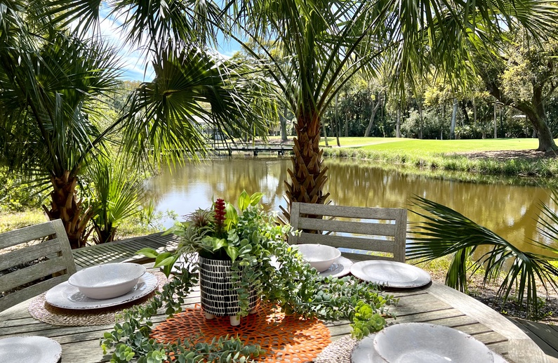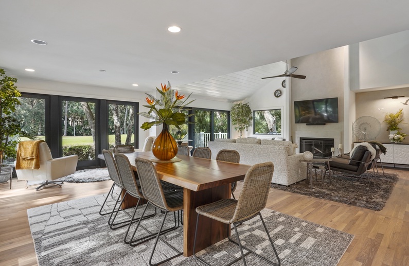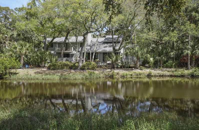 This immaculate Kiawah Island vacation rental features four bedrooms, four bathrooms, a private soaking pool, and is about a 5-minute walk to the beach. Situated on a quiet cul-de-sac, this home offers stunning panoramic lagoon views with the golf course beyond.