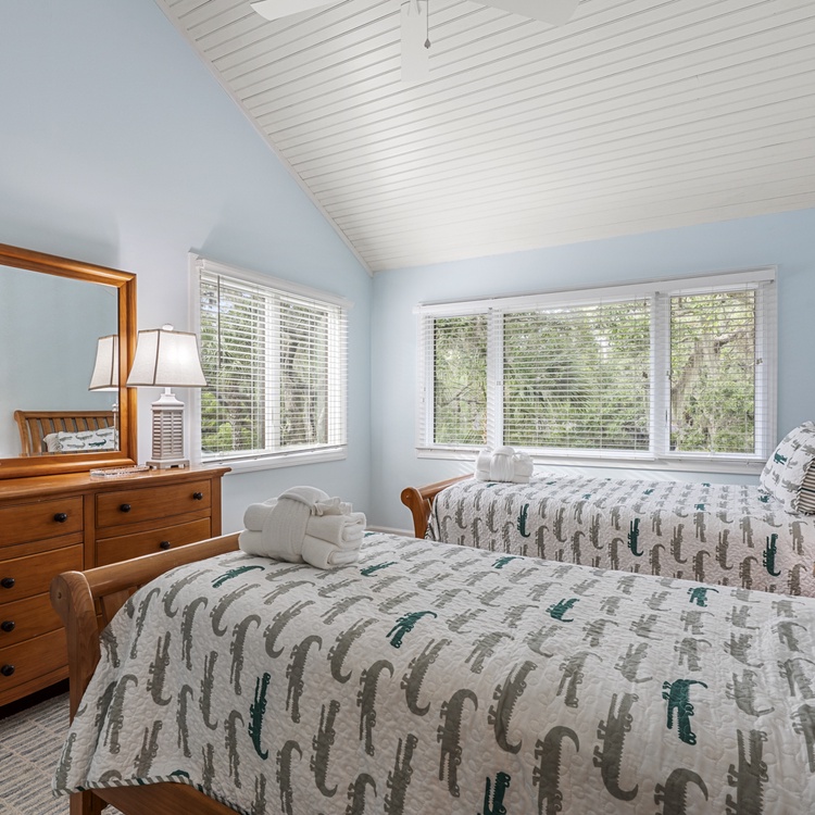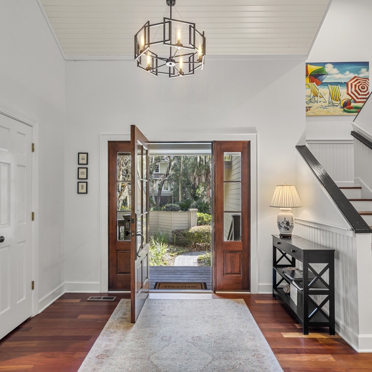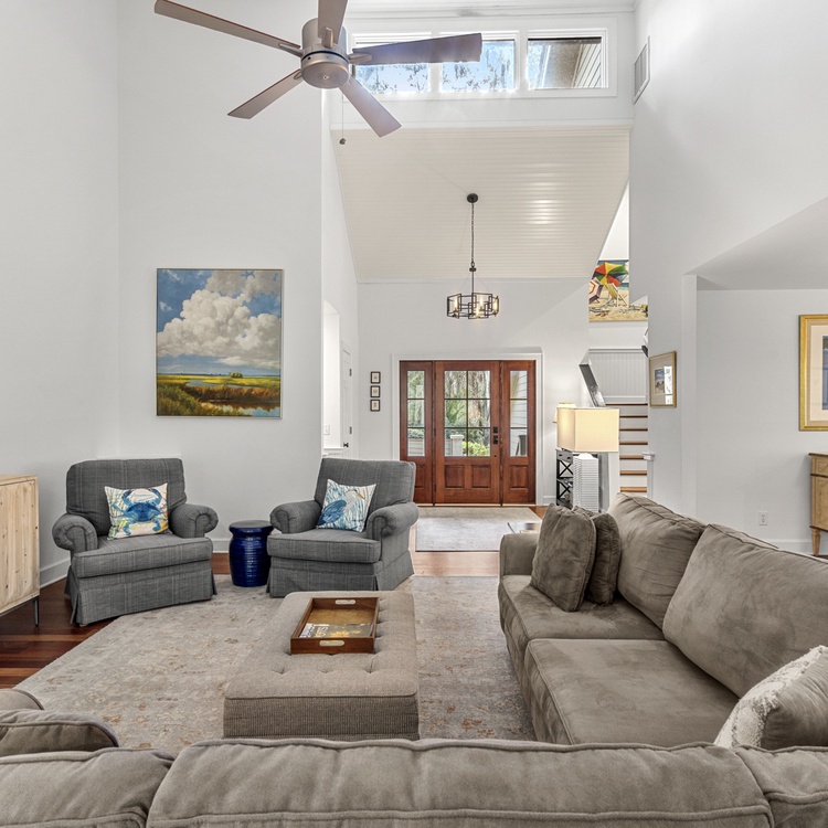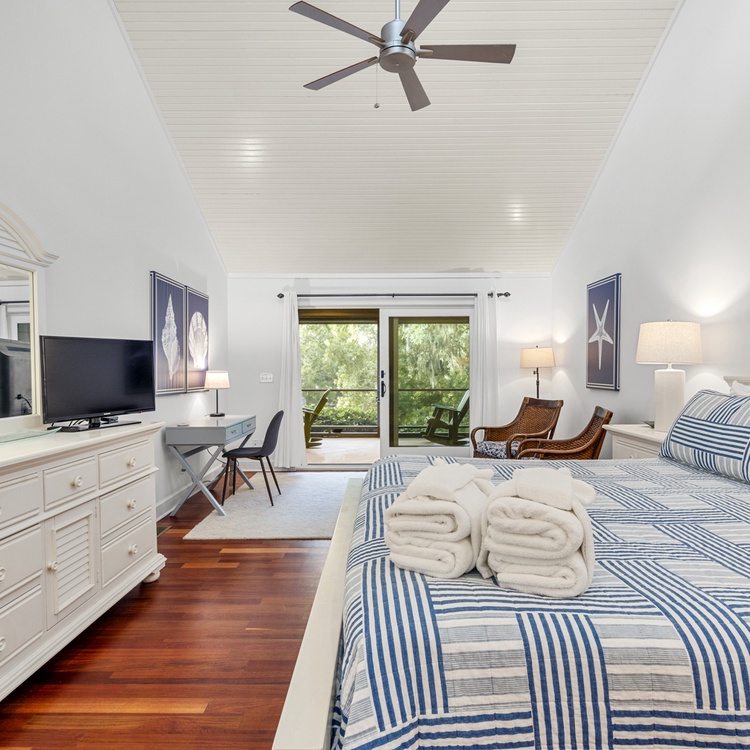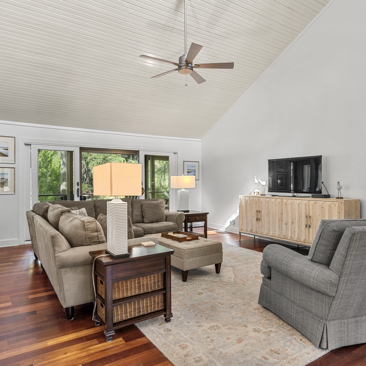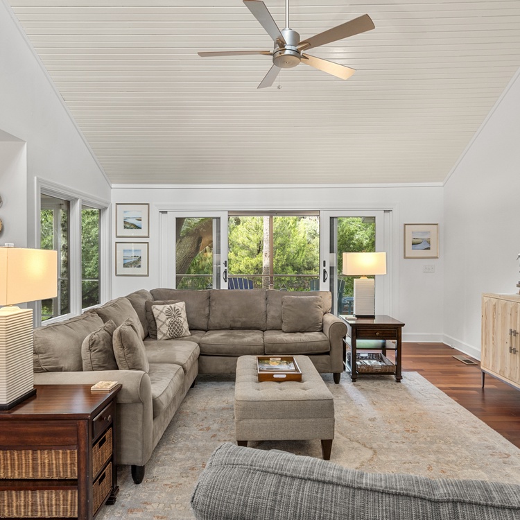 This Kiawah Island vacation rental features 4 bedrooms, a large deck and screened porch, and lovely views of the lagoon. The home is about a 5-minute walk to the beach.