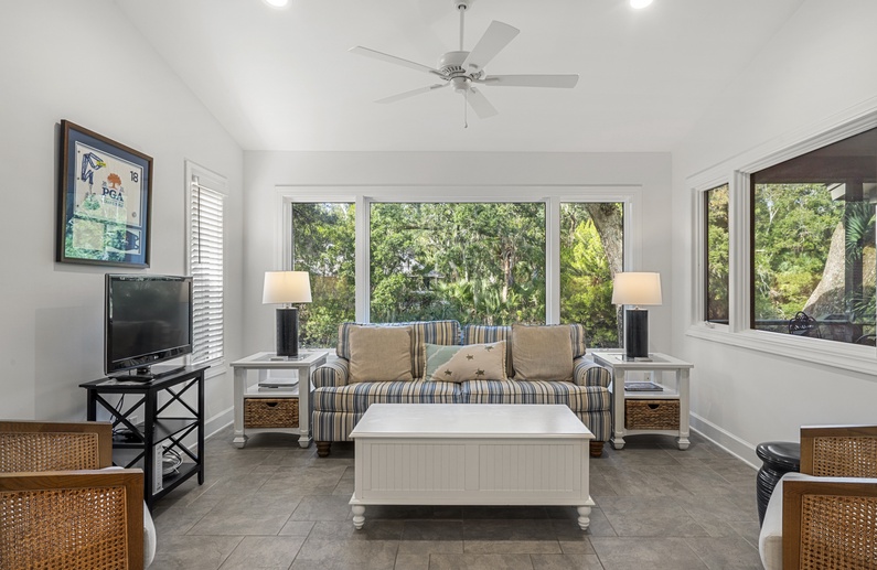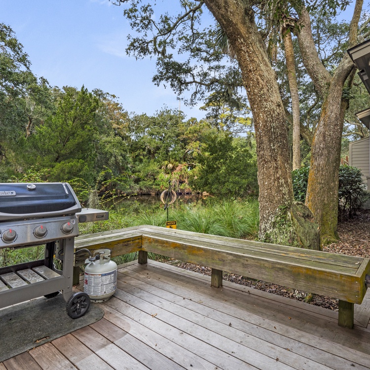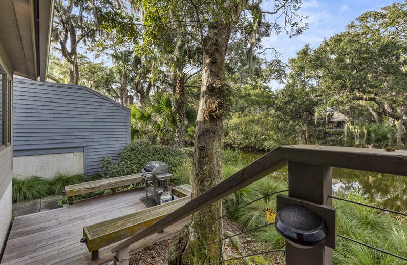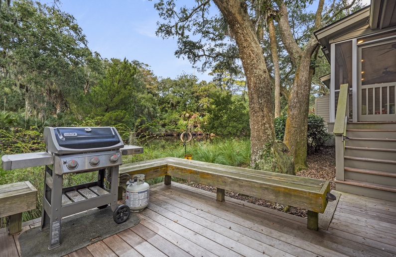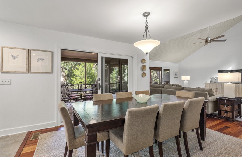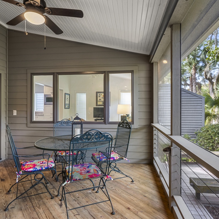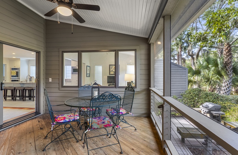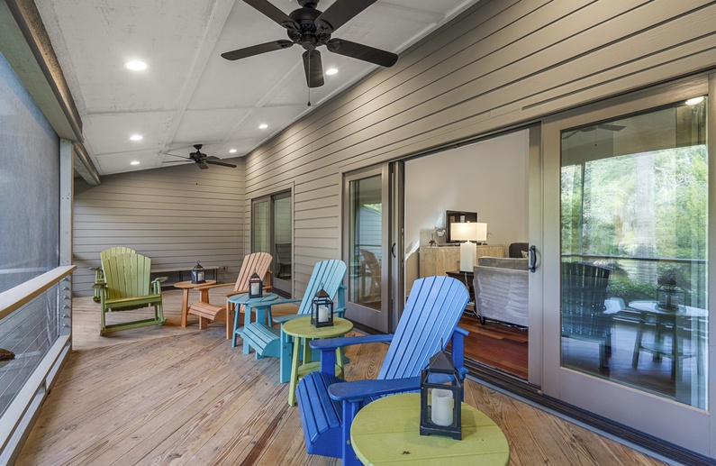 The large back deck and screened porch offer the perfect setting for enjoying the wildlife on the lagoon while having your morning coffee. The back deck has seating for four and the screened porch has a dining table with seating for four.