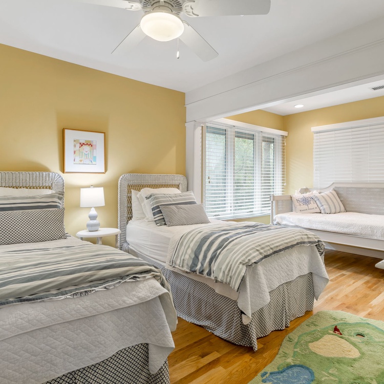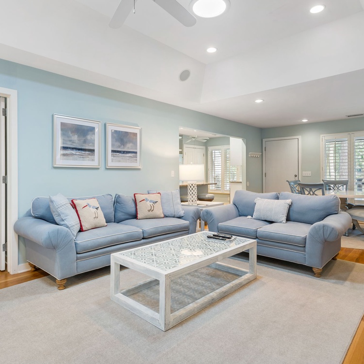 This Kiawah Island vacation rental is perfect for family time as it features 3 bedrooms, a beautiful sunroom, and a deck. Enjoy the best of both worlds as it offers peaceful nature views and a 7-minute stroll to East Beach!