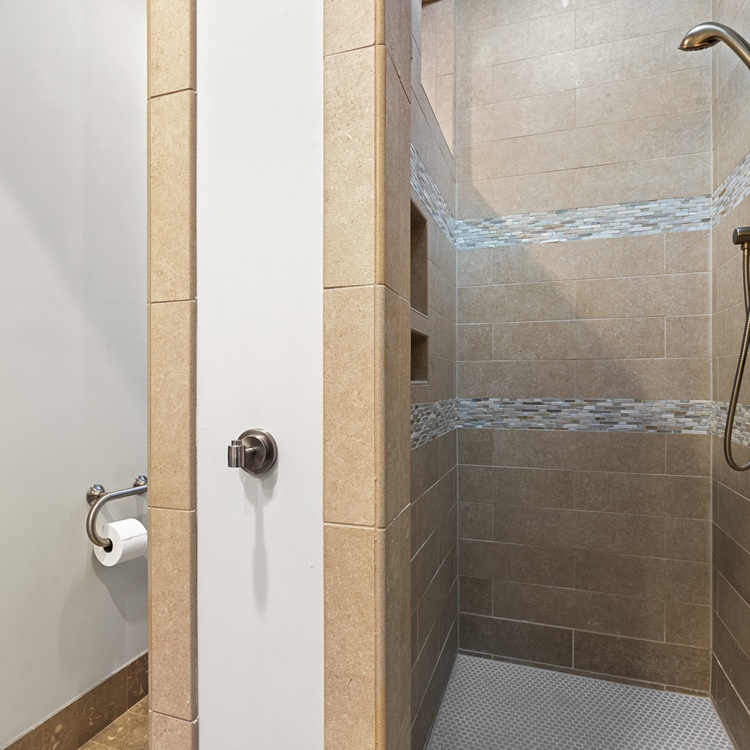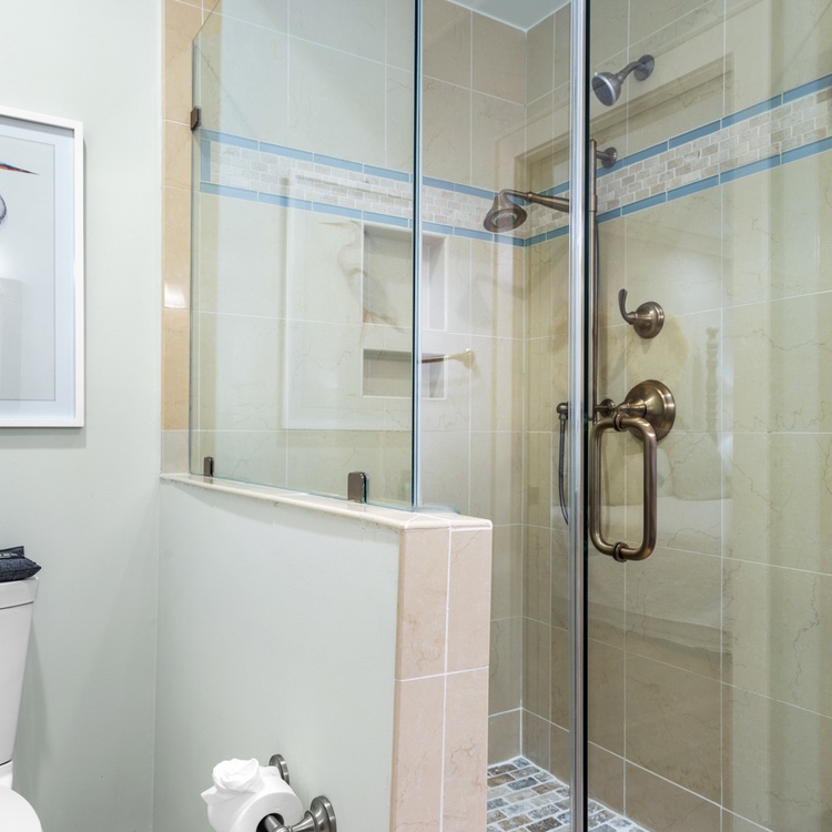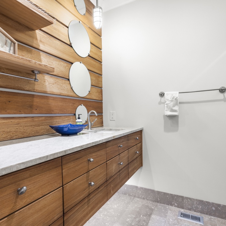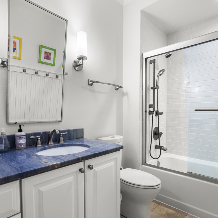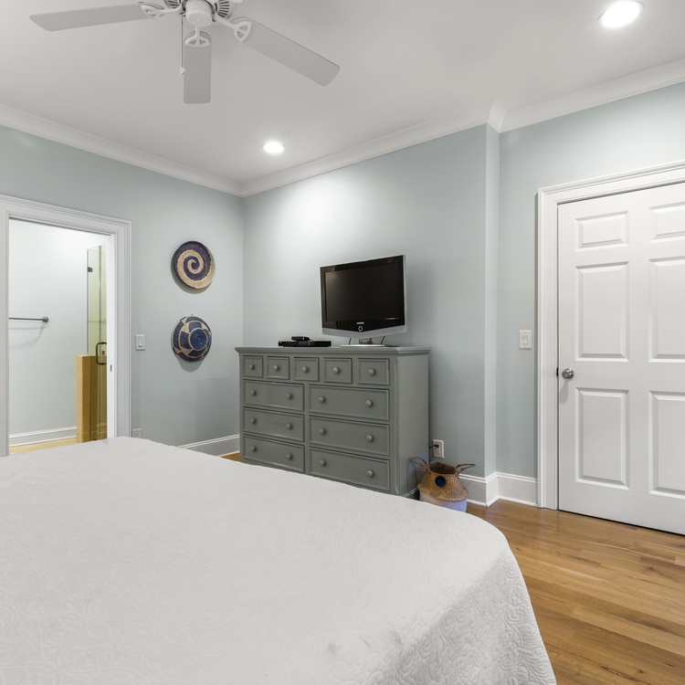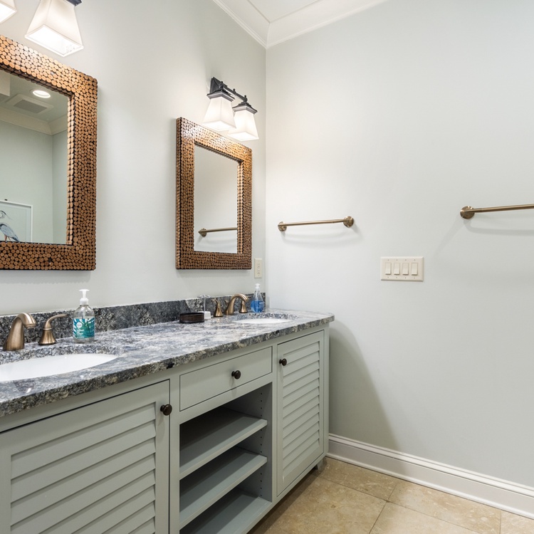 Downstairs you will find three of the home’s four bedrooms. One bedroom offers a king-sized bed, flat-screen TV, and a private bathroom with a double sink vanity and walk-in shower. On the other end of the main floor, you will find the other two bedrooms, one with a queen-sized bed and the other with two double beds. Both bedrooms are close to a hall bathroom with shower/tub combo. Down the hall, there is another full bathroom which offers a walk-in shower. Upstairs, you will find the final bedroom which has a king-sized bed, flatscreen TV, and a private bathroom with a double sink vanity, walk-in shower, and soaking tub.