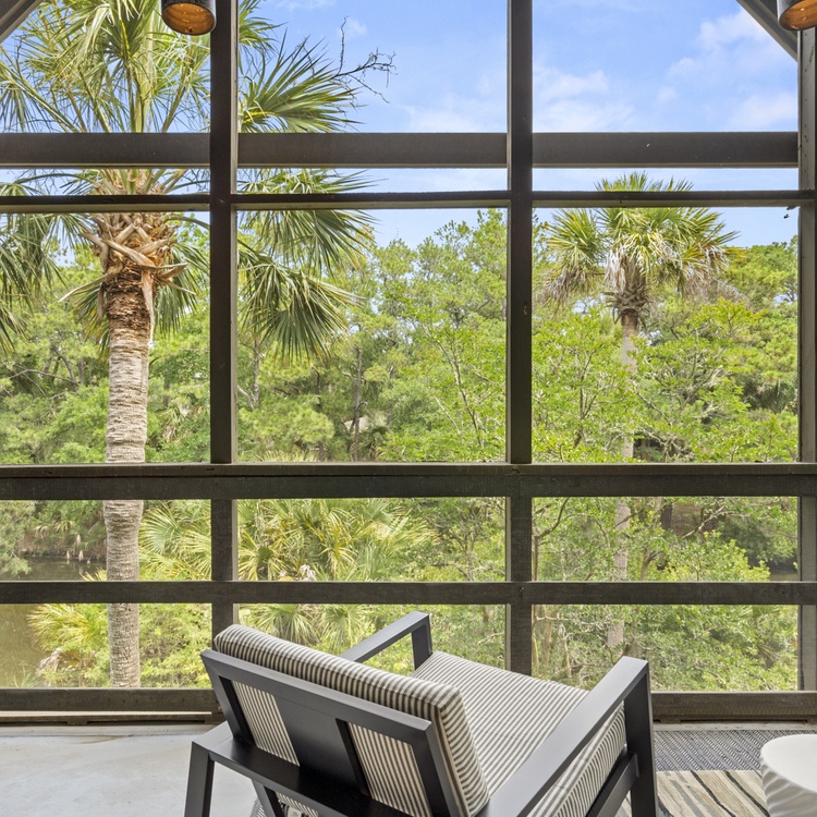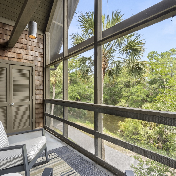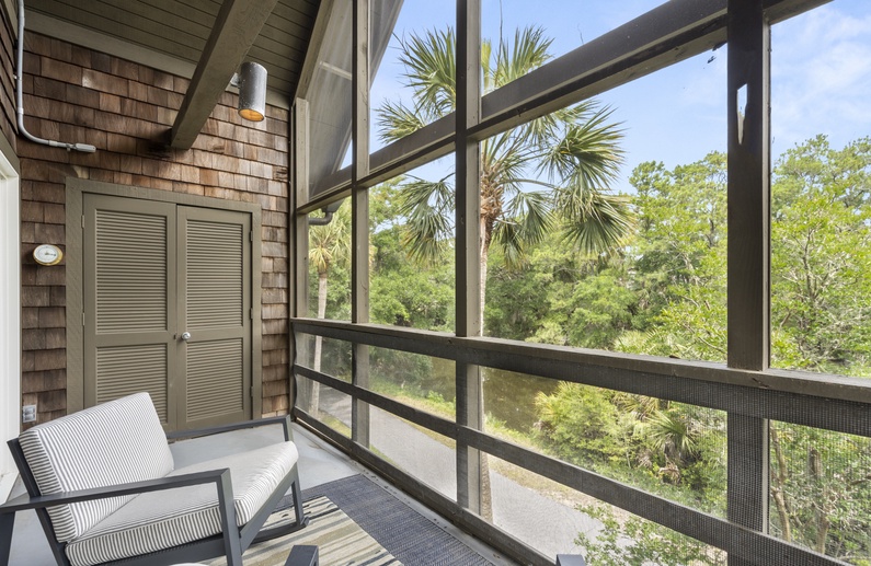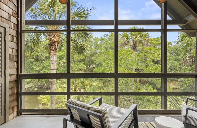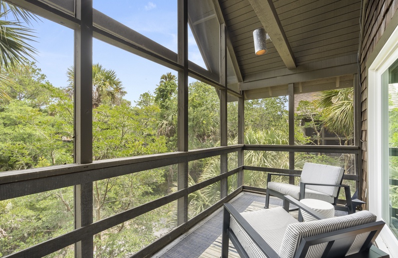 The screened porch is the perfect spot to lounge or sip your morning coffee!