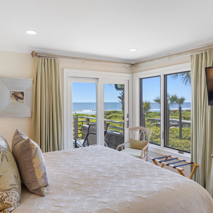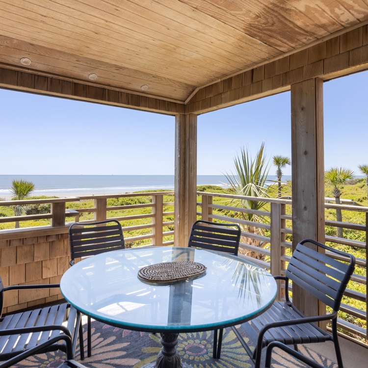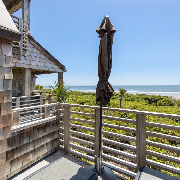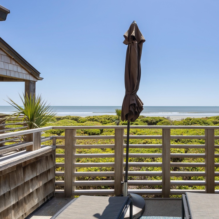 This Kiawah Island oceanfront vacation rental has been completely renovated and features three bedrooms, stunning ocean views from almost every room, a covered porch, and a sundeck.