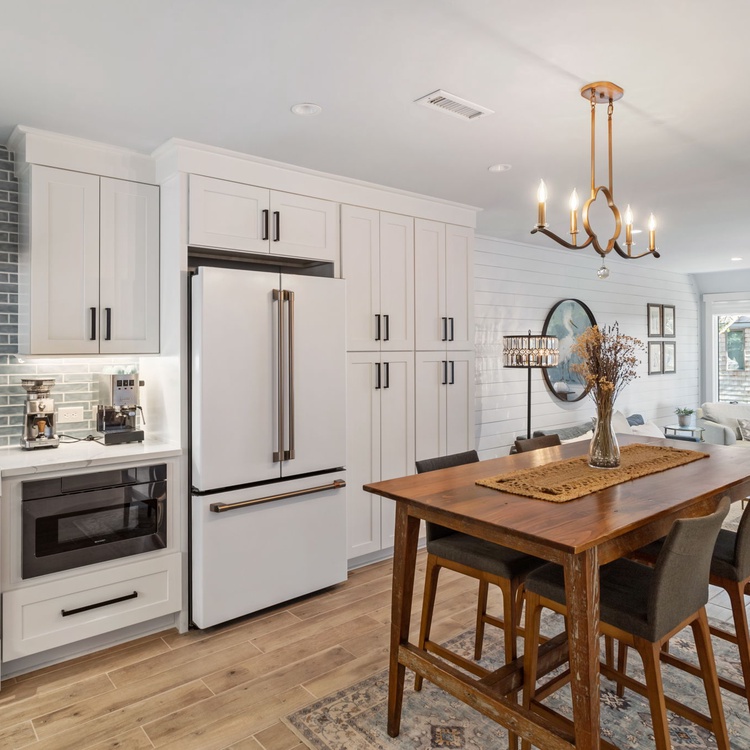 This first-floor Windswept Villa welcomes you with an open floor plan, upscale finishes, and soft neutral hues. In the living area, you will find comfortable seating equipped with a sleeper chair that converts to a twin, a flat-screen TV, and sliding door access to the balcony. The gorgeous kitchen is fully equipped with beautiful white cabinetry, deluxe appliances, and enough counter space to prepare your vacation meals. The dining area serves as the perfect entertainment space as it offers ample seating and close proximity to the kitchen.