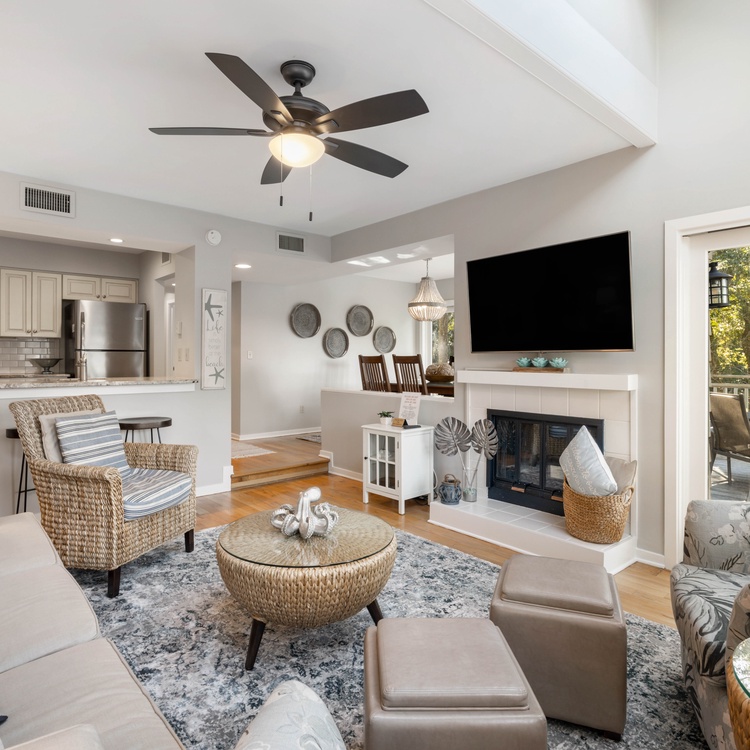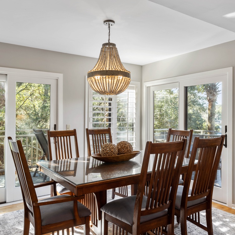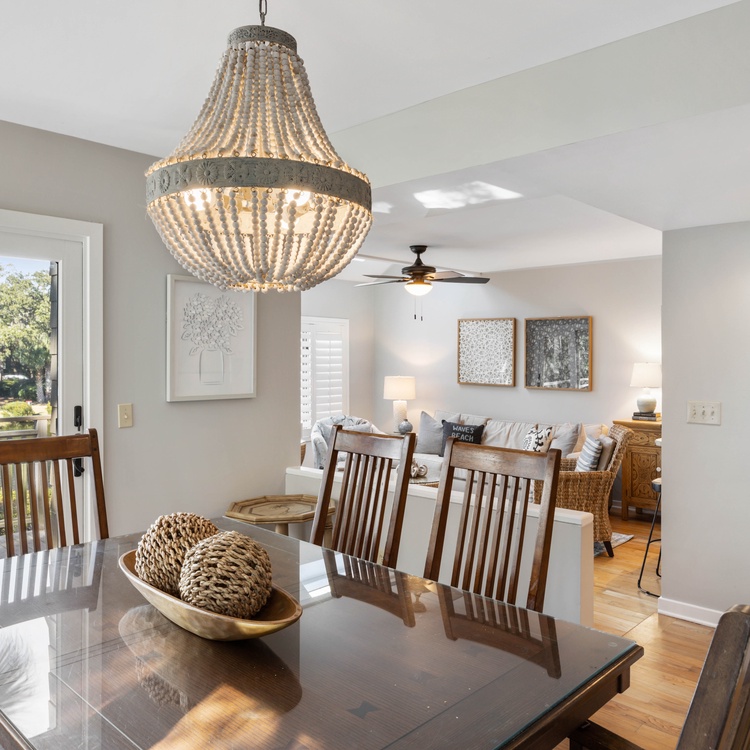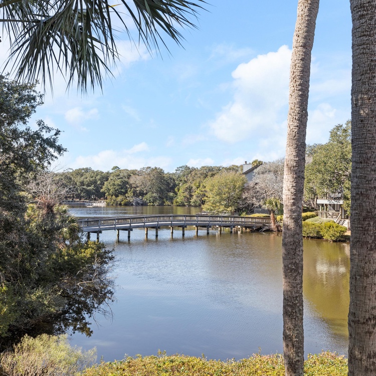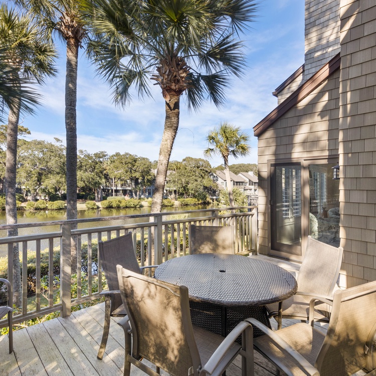 This Kiawah Island vacation rental features three bedrooms and bathrooms, a two-story townhouse layout, and lovely lagoon views. The villa is only about a 1-minute walk to the beach.