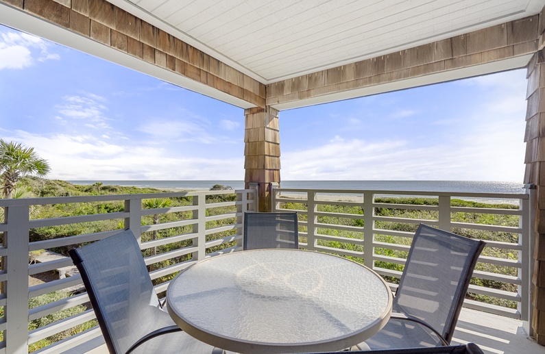 Take in sweeping ocean views and enjoy the coastal breezes from the villa's covered oceanfront balcony. The balcony, accessible from the living room, offers seating for four and is the perfect place to sip coffee or enjoy meals together.